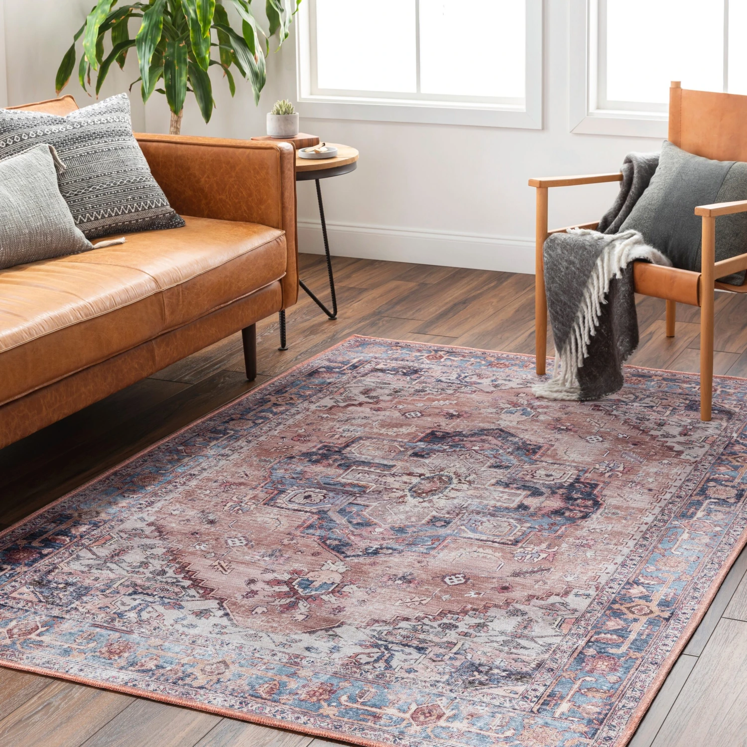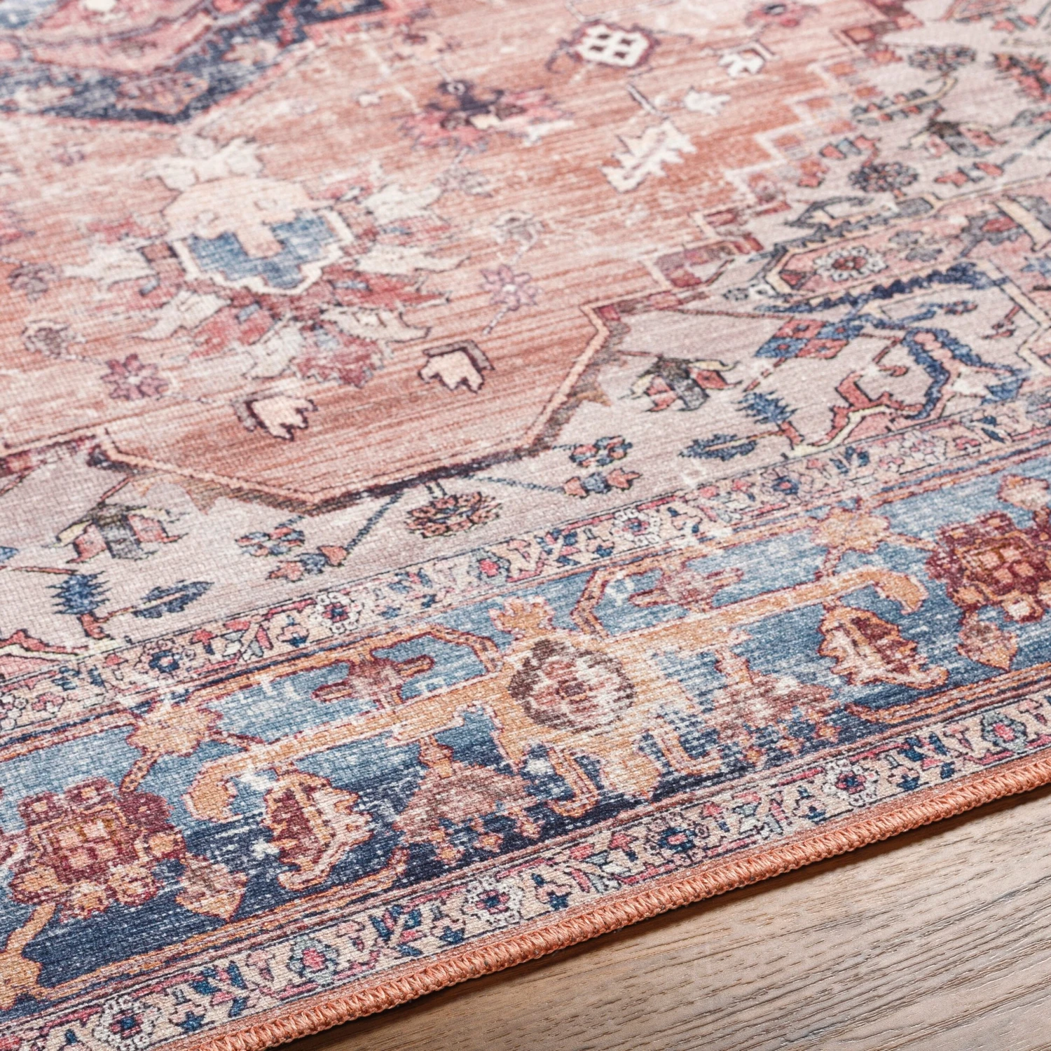 The Aurore traditional rug is an exquisite accent that will charm your guests Highlighted with intentional fading and lovely floral details, this vintage-like piece is like an antique Ideal for an entryway or hallway Machine woven with cotton and chenille-polyester in Turkey, and low pile Easy to clean and durable, this rug is perfect for homes with pets or small children Machine wash on a cold setting, without detergent and hang to dry Spot clean with a dry, clean cloth and vacuum without a beater bar to maintain the appearance of your rug A rug pad is recommended to prevent movement