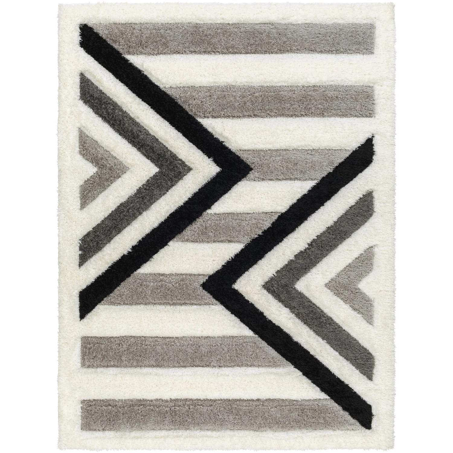 This plush geometric rug from the Bologna collection points your room in the right direction, especially if you’re heading toward a modern vibe. Stripes of gray and white form the background, while linear grayscale elements form arrow-inspired motifs. Machine woven in Turkey of 100% Polyester in a plush pile, this rug is suitable for medium to low traffic areas such as living rooms, bedrooms, and game rooms. Spot clean with a dry, clean cloth and vacuum without a beater bar regularly to maintain the appearance of your rug. For a bigger clean, have the rug professionally cleaned. A rug pad is recommended to prevent movement.