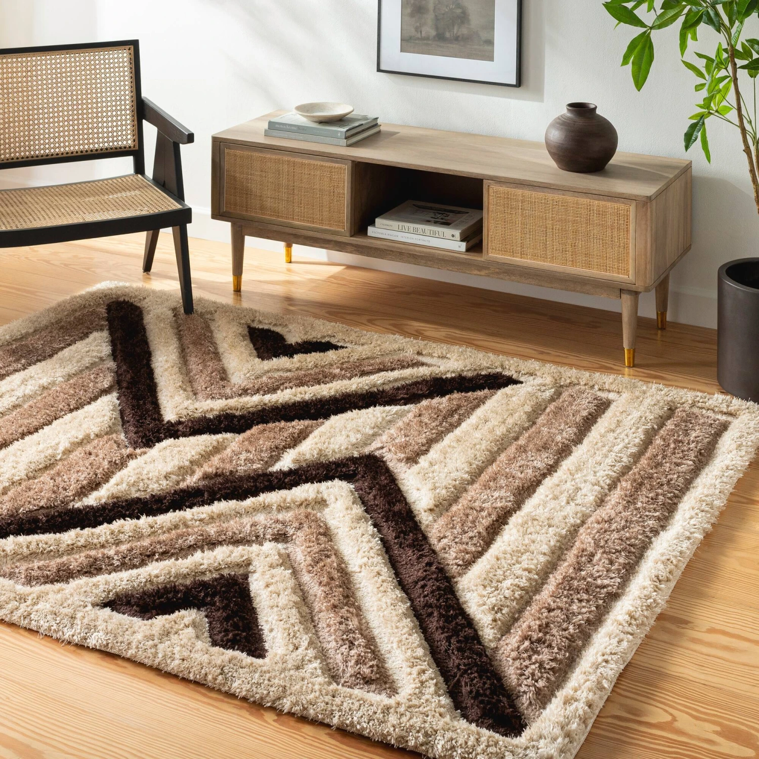 - Add beautiful color and style to your space with this modern area rug.