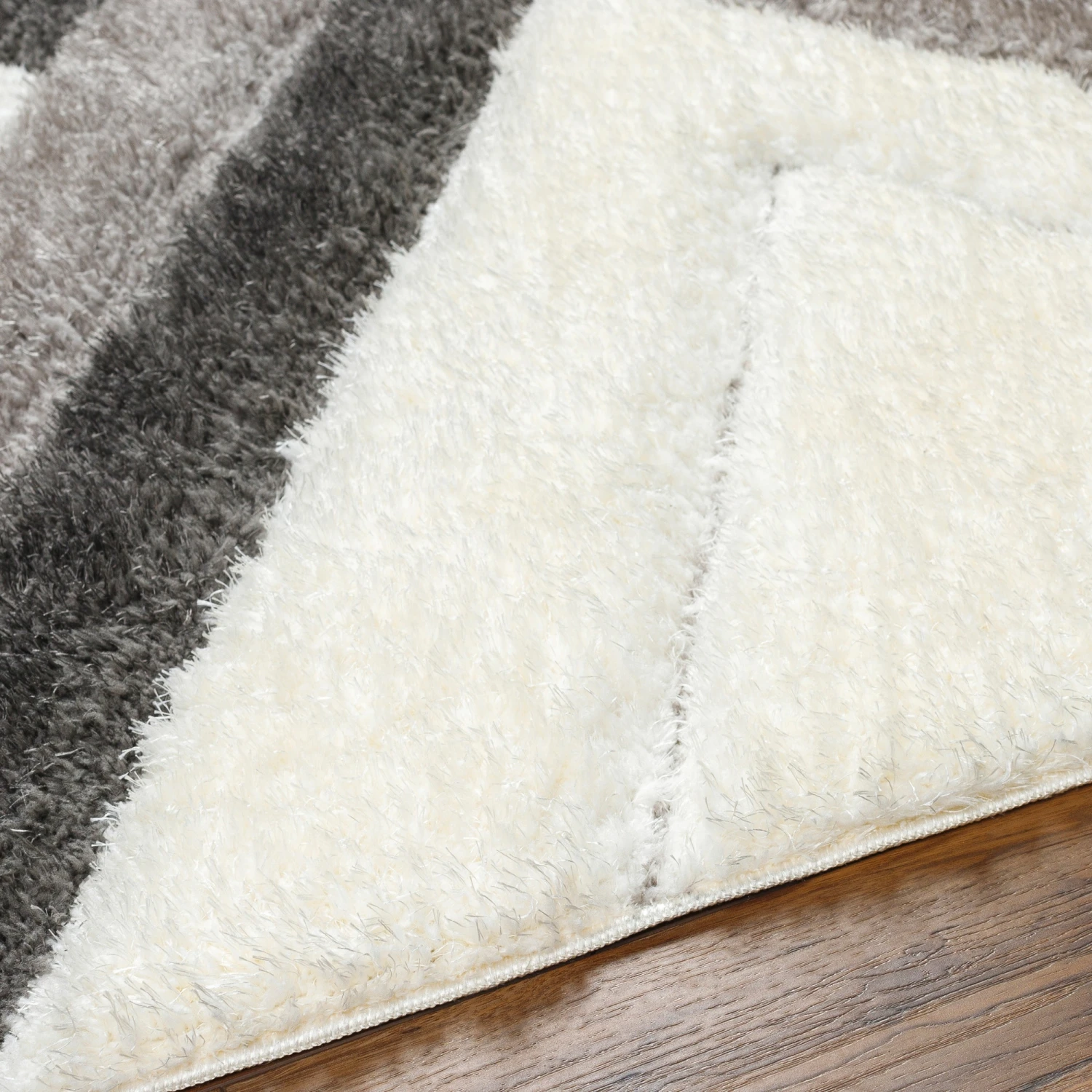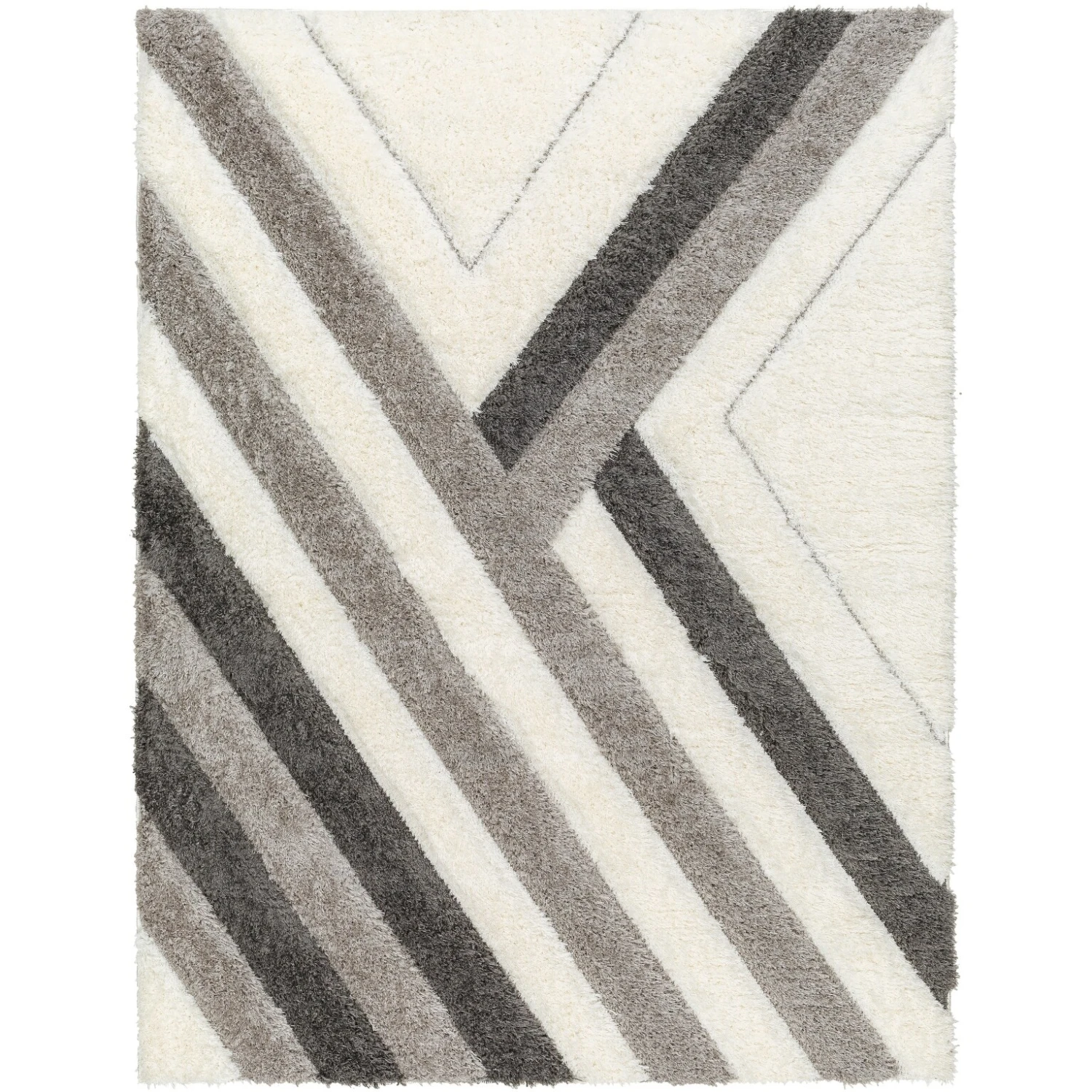 This plush rug from the Bologna collection layers aesthetic and tactile appeal into modern spaces. Linear elements in contrasting tones form an intriguing geometric pattern, perfect for contemporary, glam, or modern farmhouse interiors. Machine woven in Turkey of 100% Polyester in a plush pile, this rug is suitable for medium to low traffic areas such as living rooms, bedrooms, nurseries, and game rooms. Spot clean with a dry, clean cloth and vacuum without a beater bar regularly to maintain the appearance of your rug. For a bigger clean, have the rug professionally cleaned. A rug pad is recommended to prevent movement.