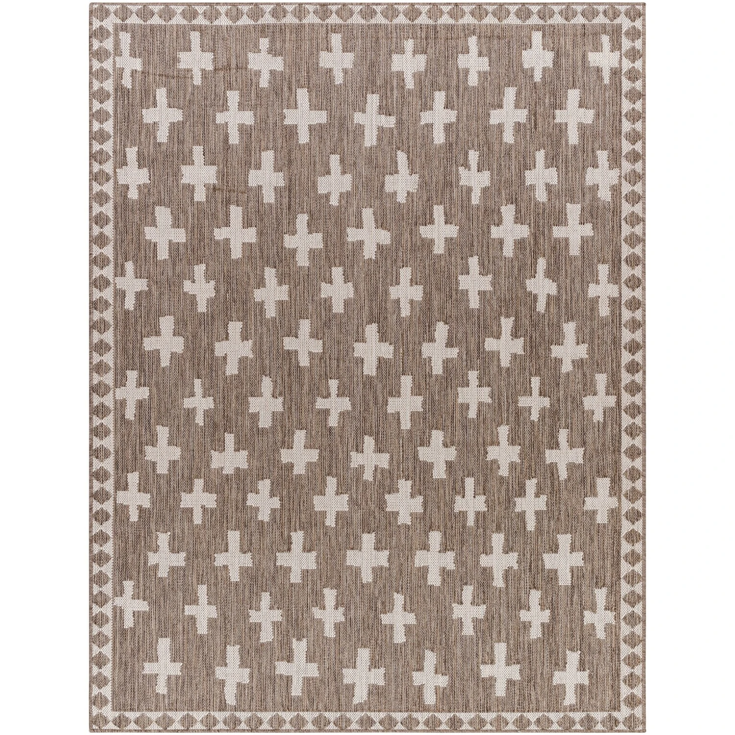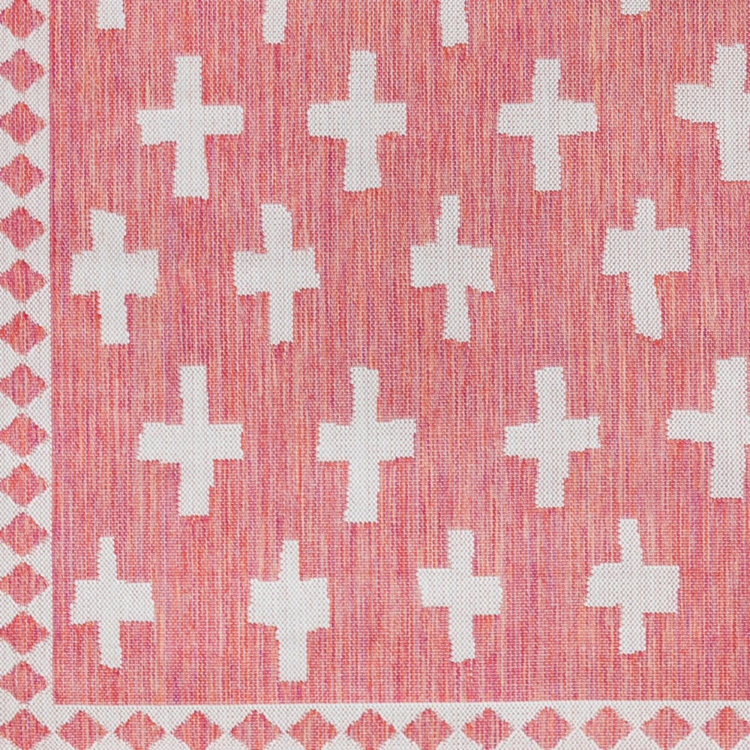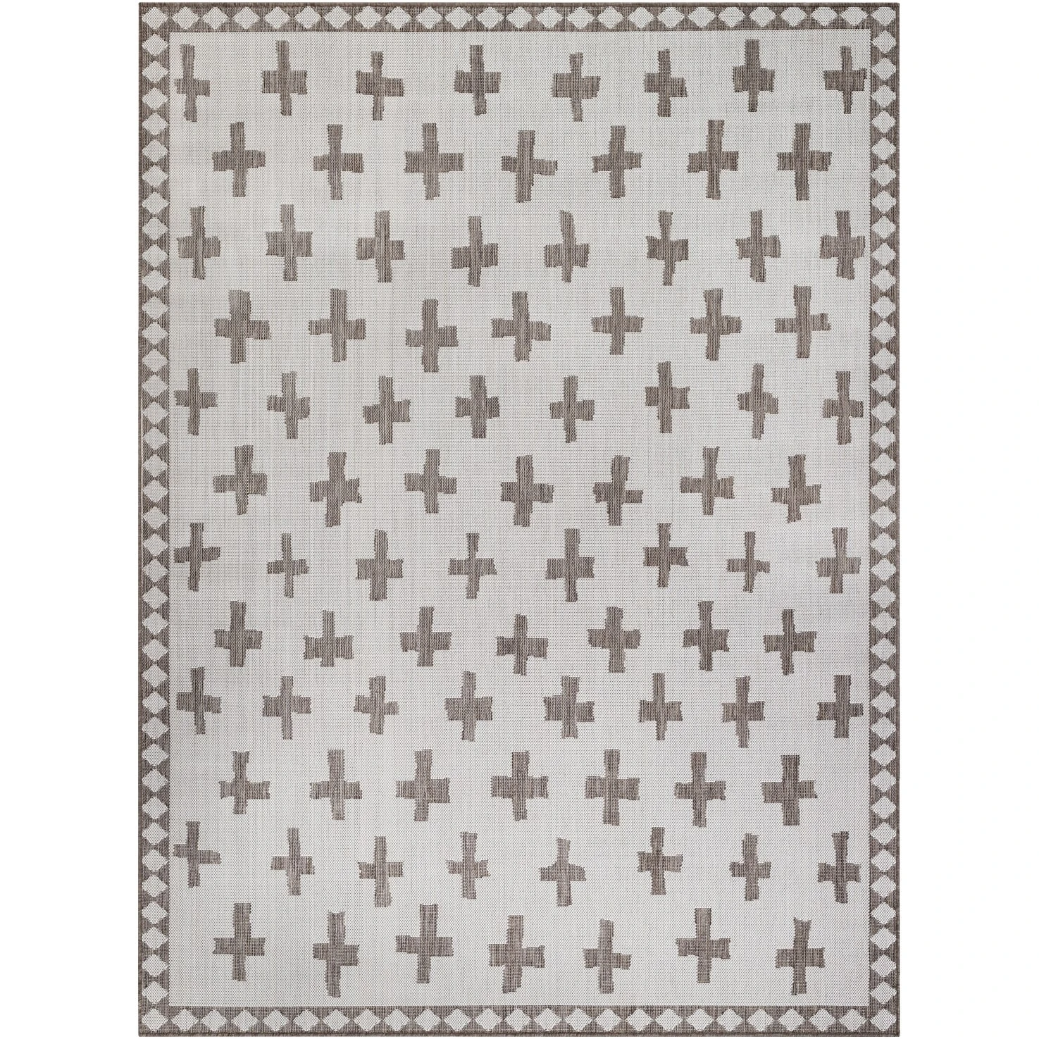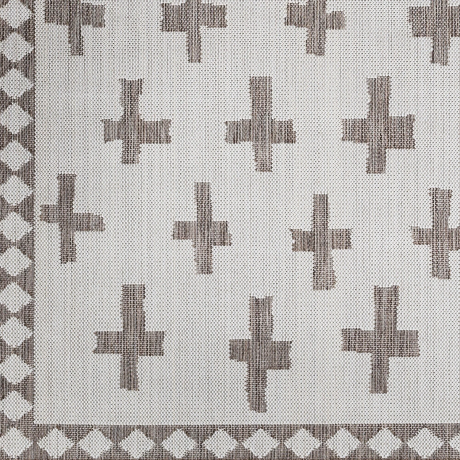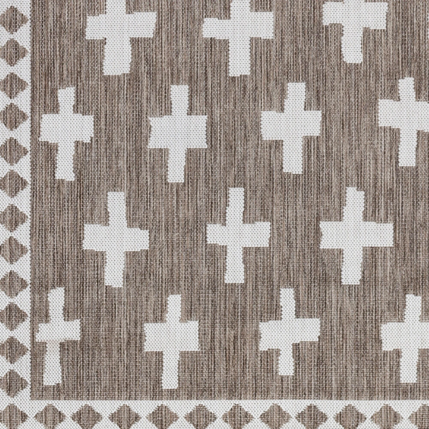 This outdoor-safe, high-performance rug from the Boronia collection soars with style, exhibiting a bold pattern of triangle motifs and geometric elements. This striking accent complements rooms and patios designed in a modern, global, or casual aesthetic. Machine woven in Turkey of 100% Polypropylene with no pile, this rug is suitable for high-traffic areas such as patios, entryways, hallways, and living areas. Easy to clean and durable, this rug is perfect for homes with small children or pets and can easily transition for use inside or outside the home. Spot clean only, or rinse with a garden hose. The use of an outdoor rug pad is recommended.