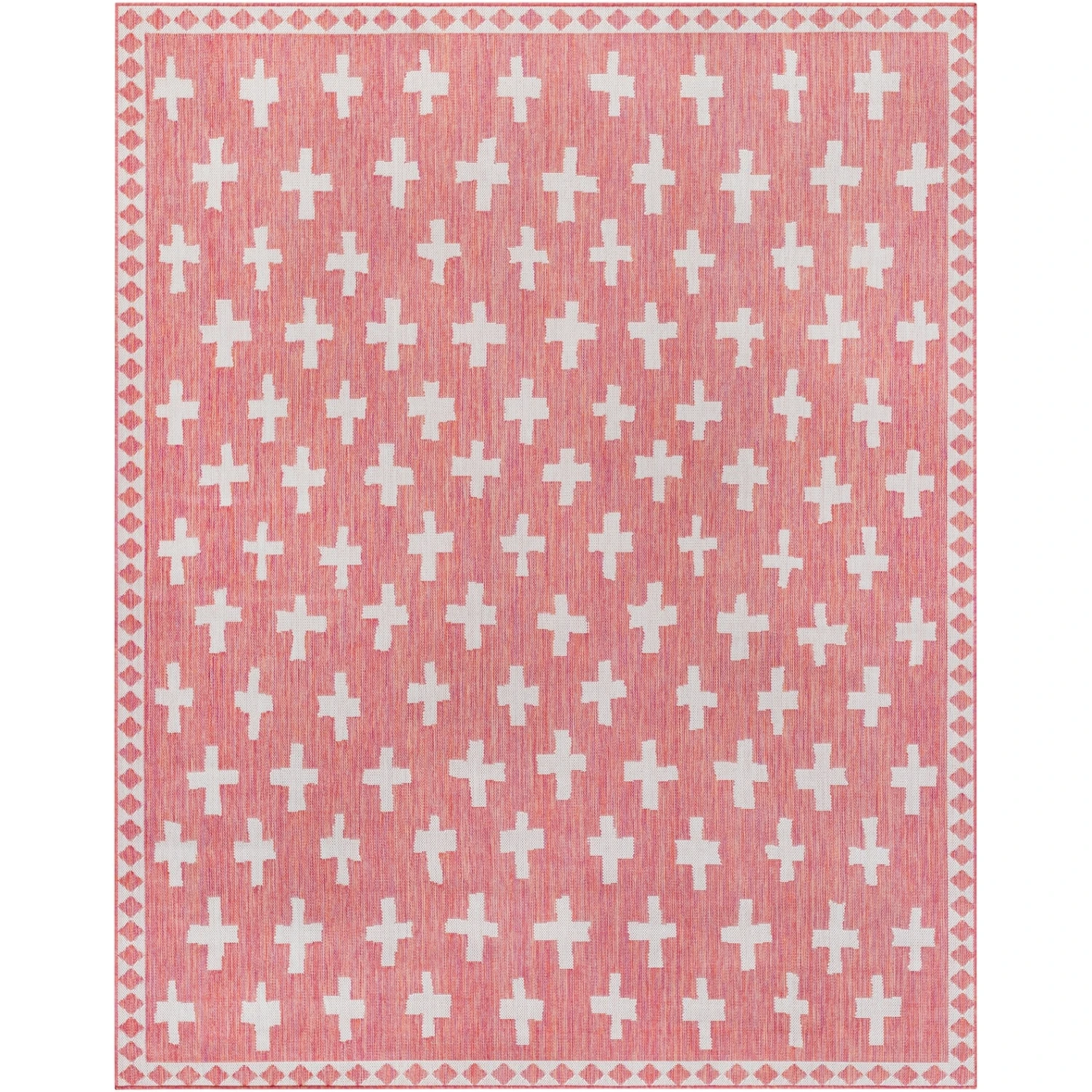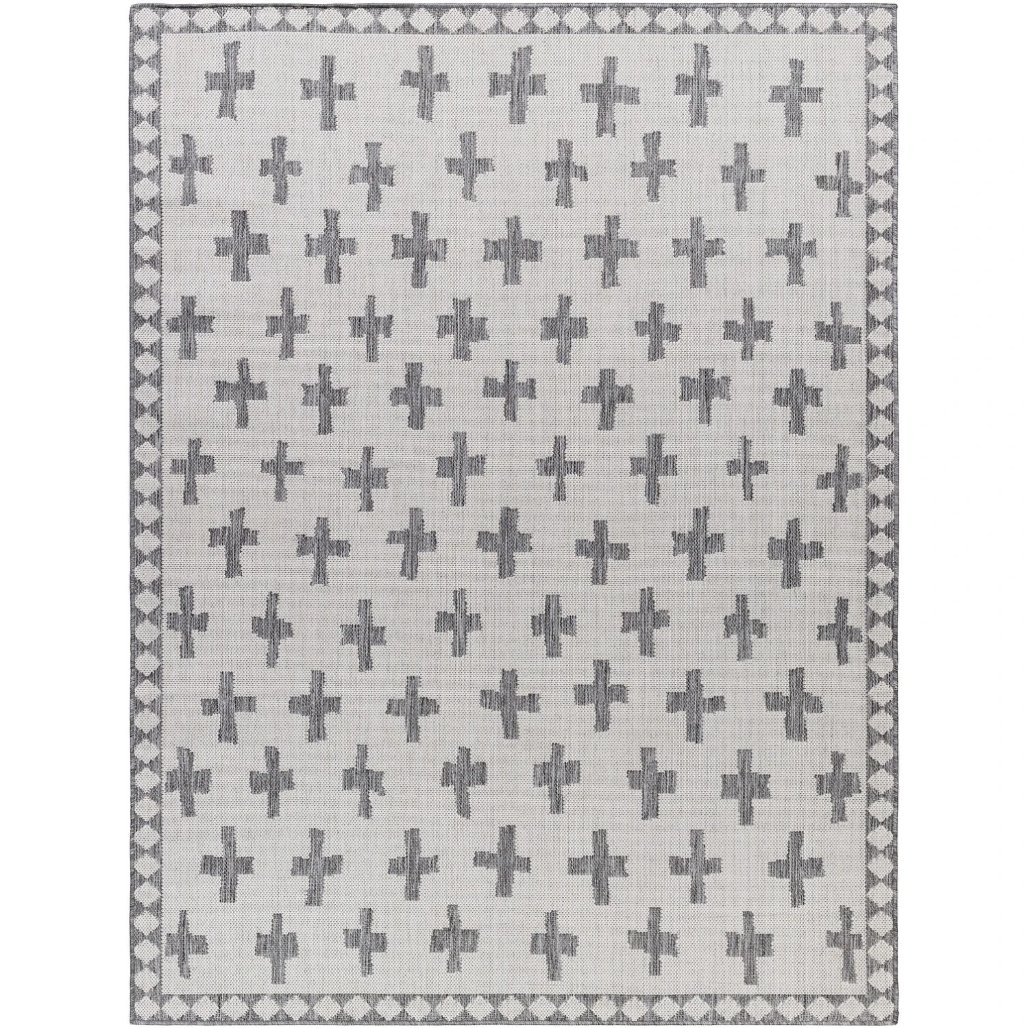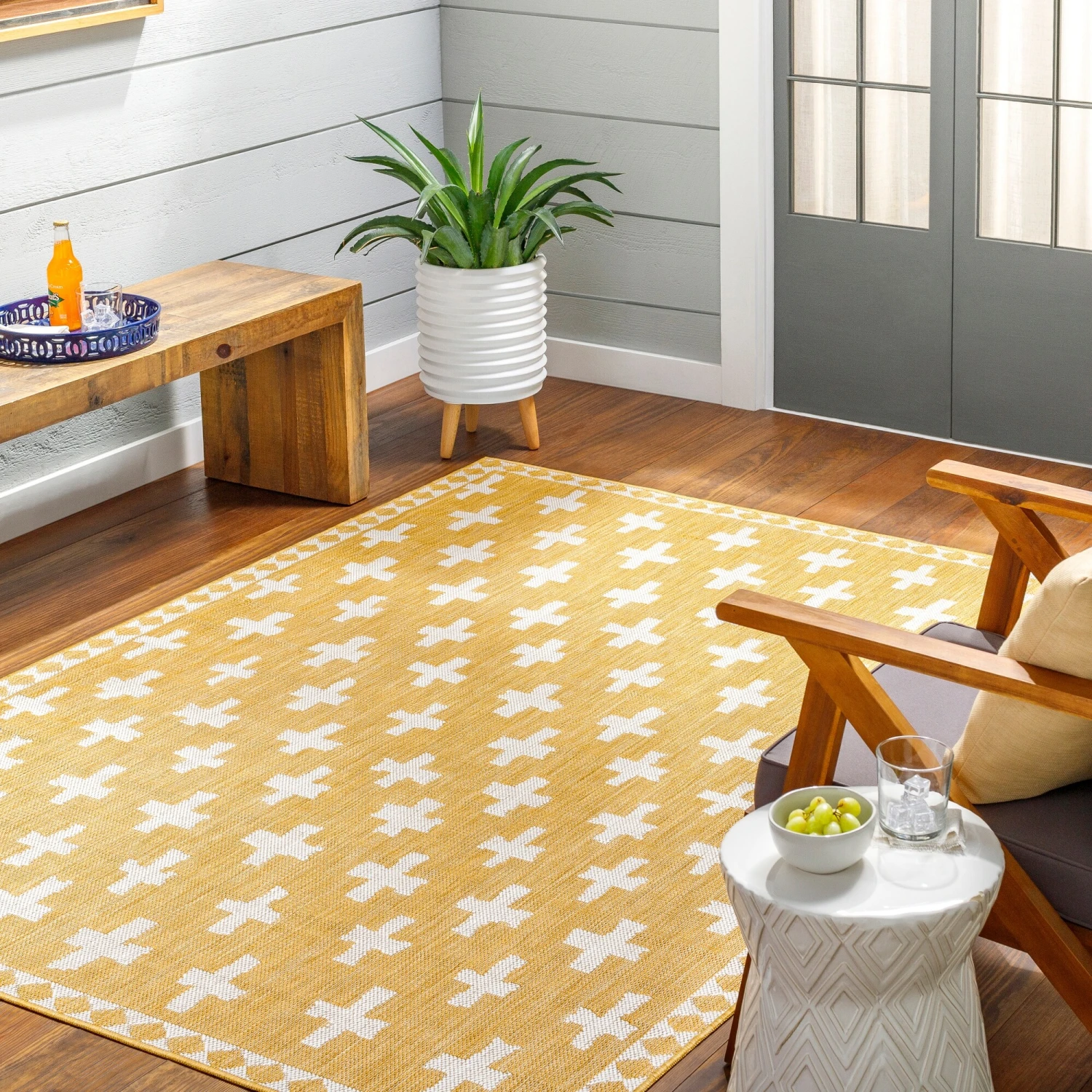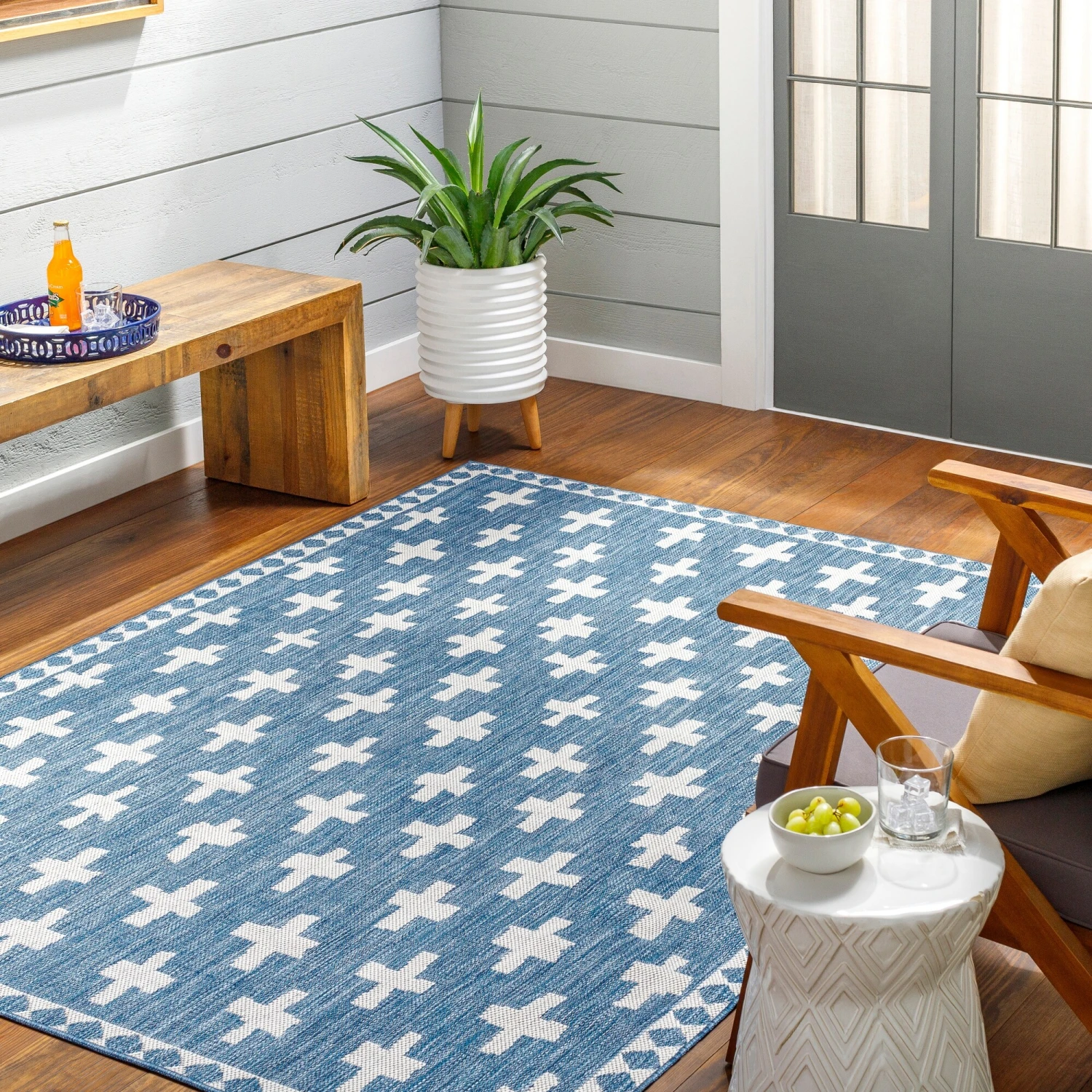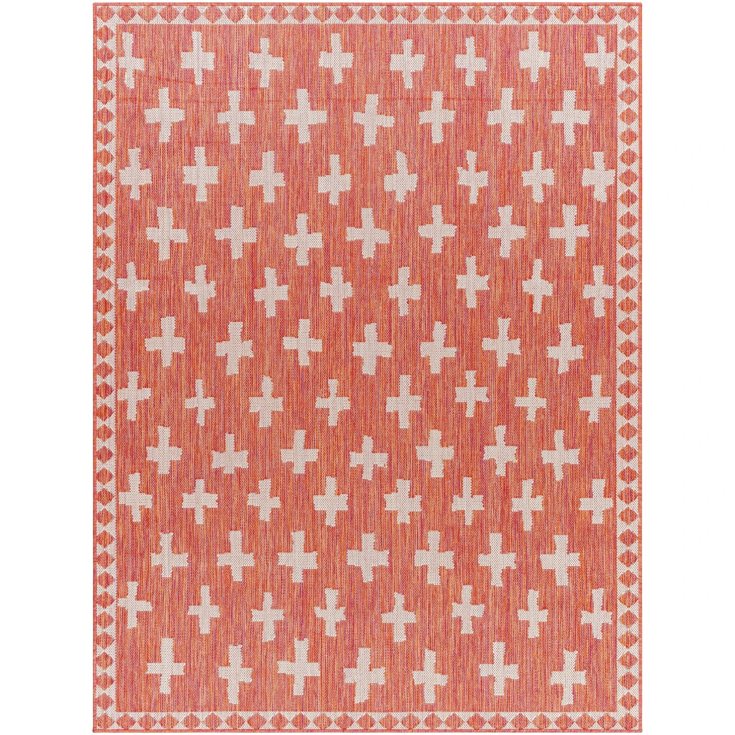 This outdoor-safe, high-performance rug from the Boronia collection soars with style, exhibiting a bold pattern of triangle motifs and geometric elements. This striking accent complements rooms and patios designed in a modern, global, or casual aesthetic. Machine woven in Turkey of 100% Polypropylene with no pile, this rug is suitable for high-traffic areas such as patios, entryways, hallways, and living areas. Easy to clean and durable, this rug is perfect for homes with small children or pets and can easily transition for use inside or outside the home. Spot clean only, or rinse with a garden hose. The use of an outdoor rug pad is recommended.
