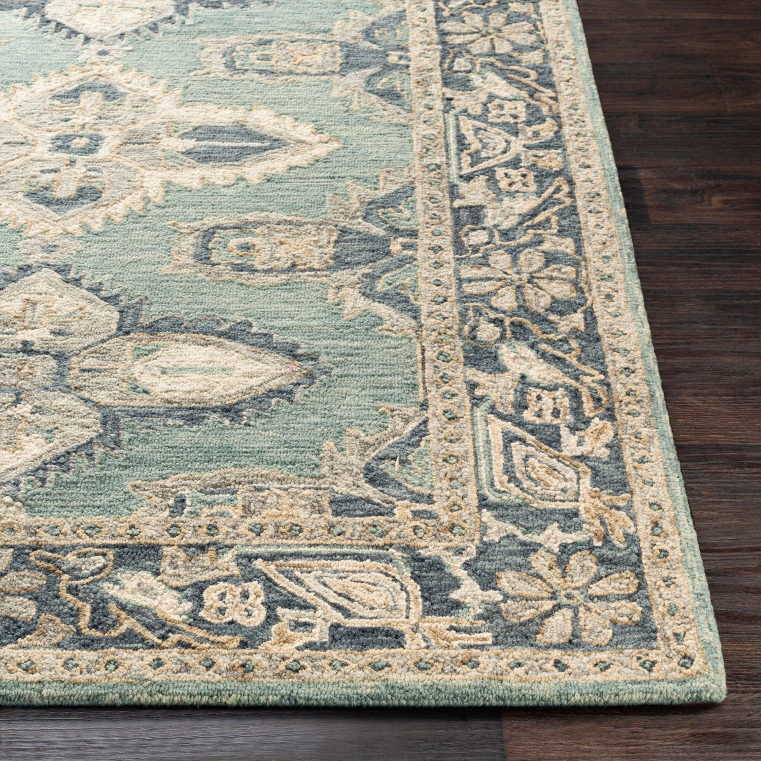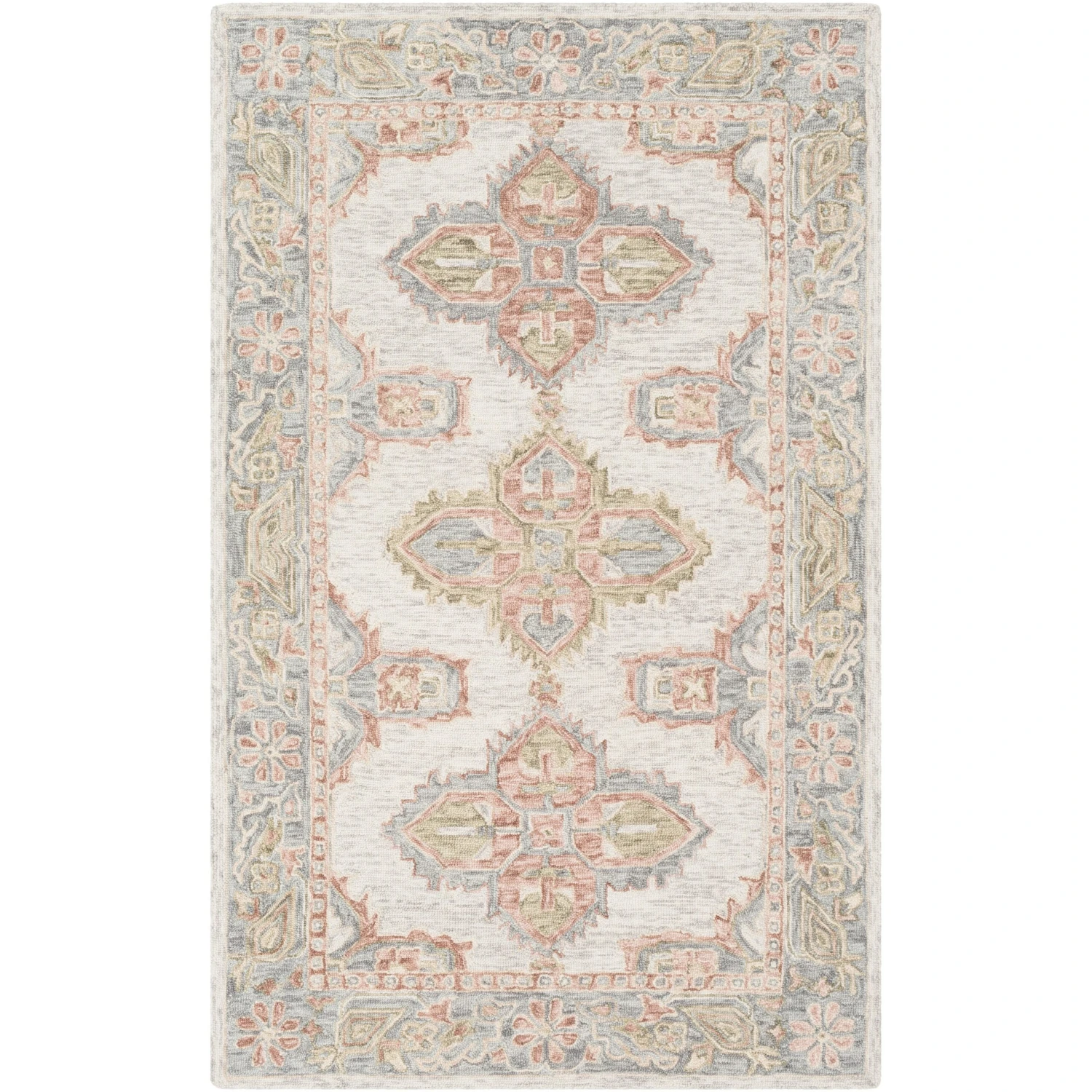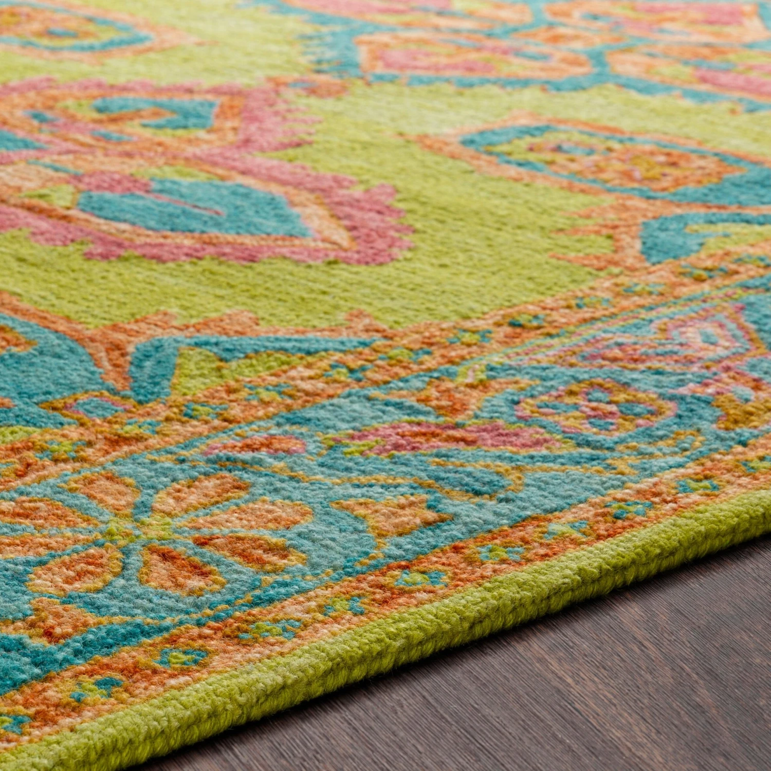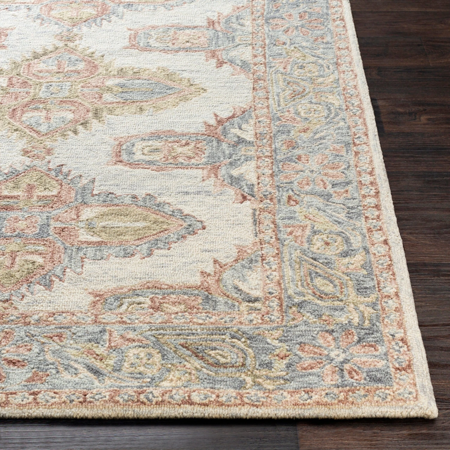The trendy Davida collection will effortlessly bring a sense of global charm and style in your home. Hand-hooked in India, this collection showcases vibrant colors, vintage rug patterns, and a unique heathered texture. Works well in a casual or formal setting! Made with 100% wool and has a comfortable medium pile. Spot clean or professionally clean only. One Year Limited Warranty.