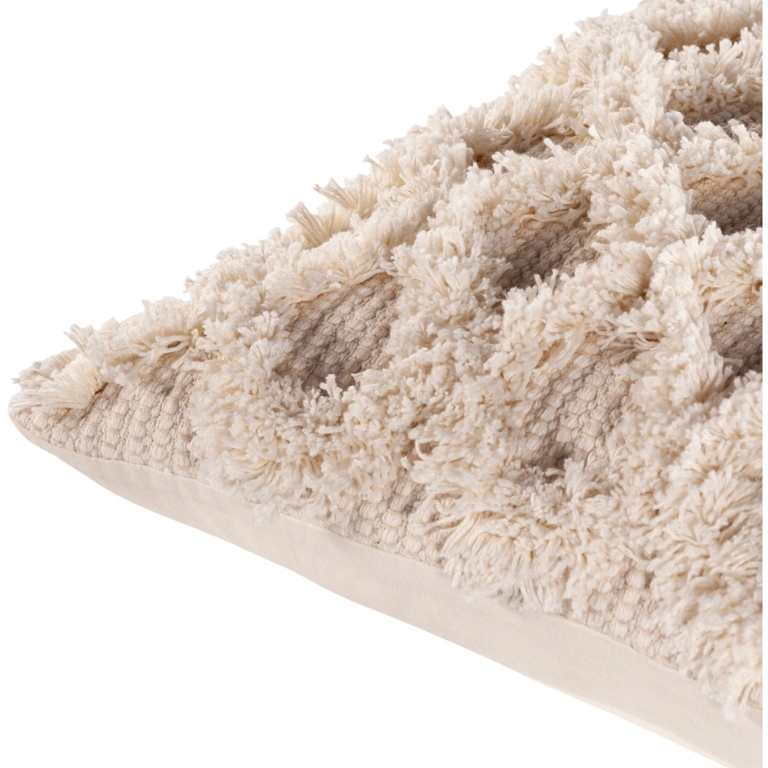 Add a touch of Scandinavian style to your decor with Donne Handwoven Shaggy Throw Pillow. The textural pattern features beautiful neutral tones of khaki and ivory, perfectly complementing any cozy bedroom or globally-inspired living room. Hand-woven in India, this pillow comes with a hidden zipper enclosure and a solid cotton back cover. Spot clean only. Available in three sizes and with feather down or polyester fill, or as a pillow cover only.