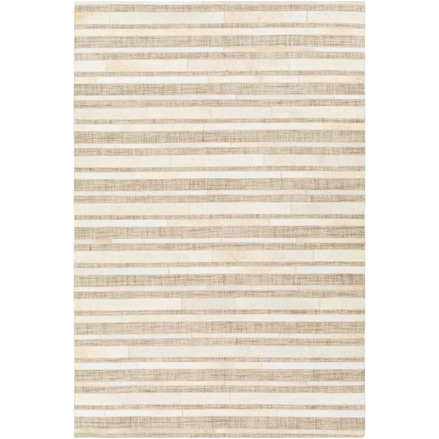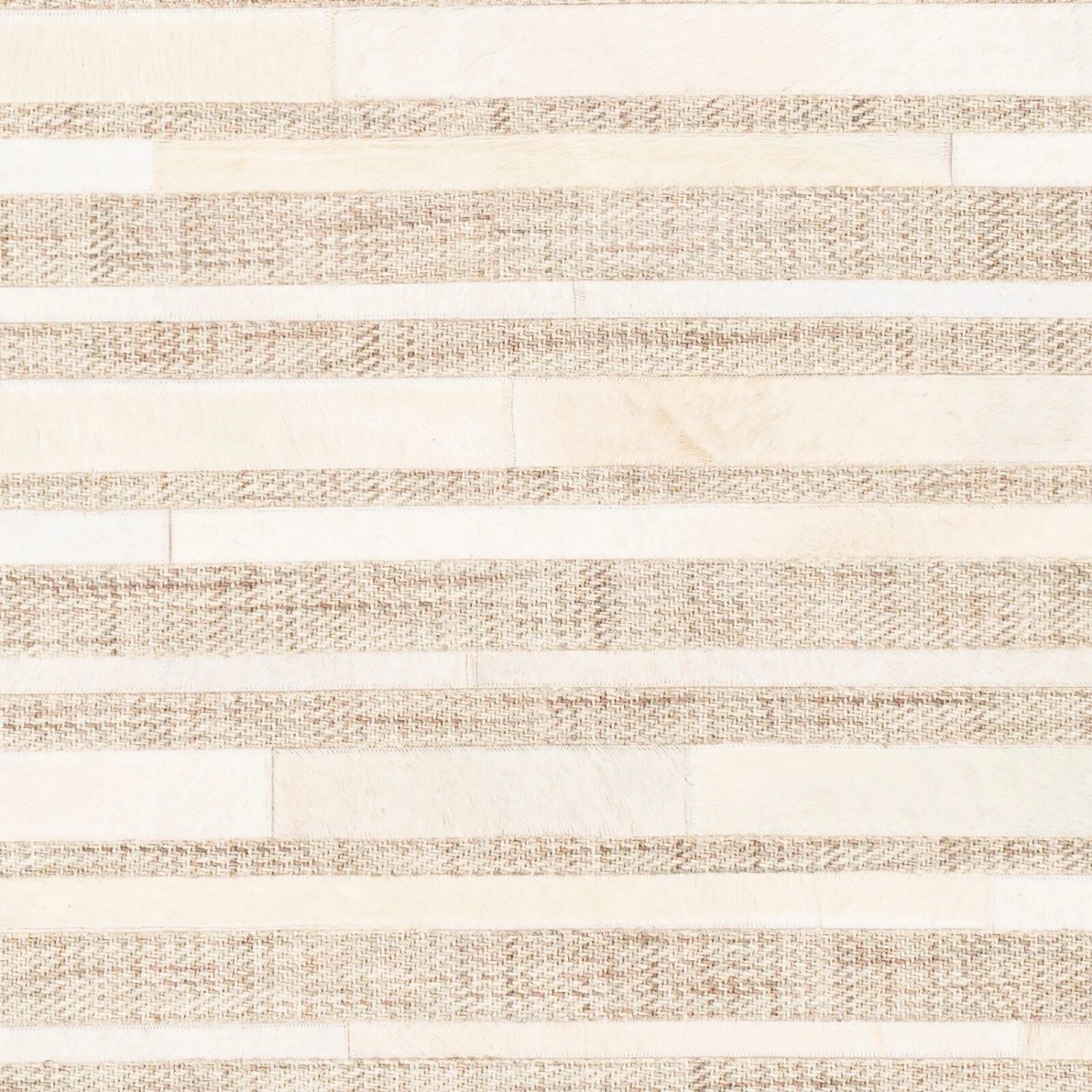 Brighten up your space with the classic simplicity of the Eula rug. Timeless stripes of wool and hair-on-hide leather are sewn with care and style to make a piece that’s both laid-back and high class. Great for a cozy bedroom. Hand woven in India with 60% wool, 40% leather and a thickness of 0.15 inches. A rug pad is recommended to prevent slippage and movement. Spot clean with a white cloth.