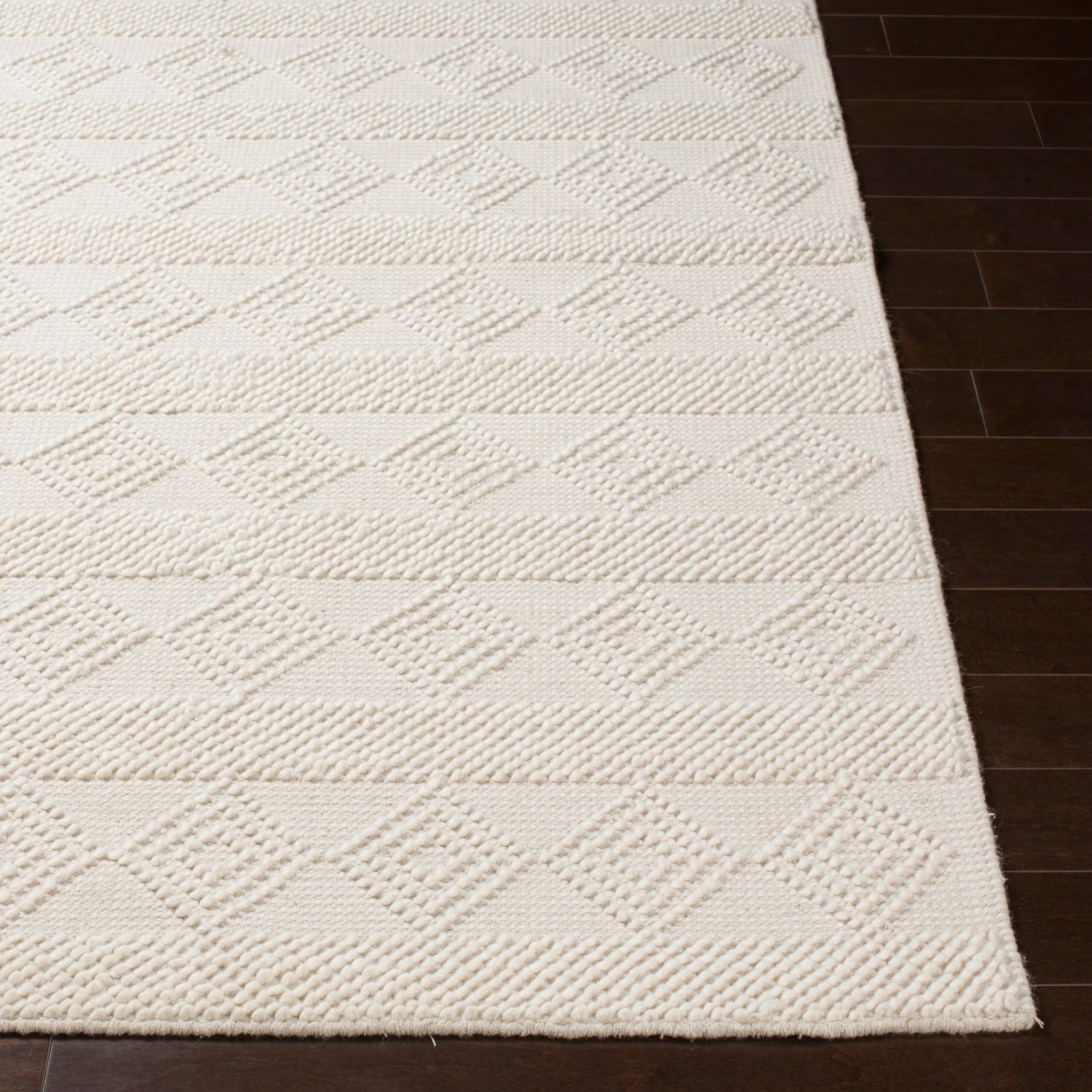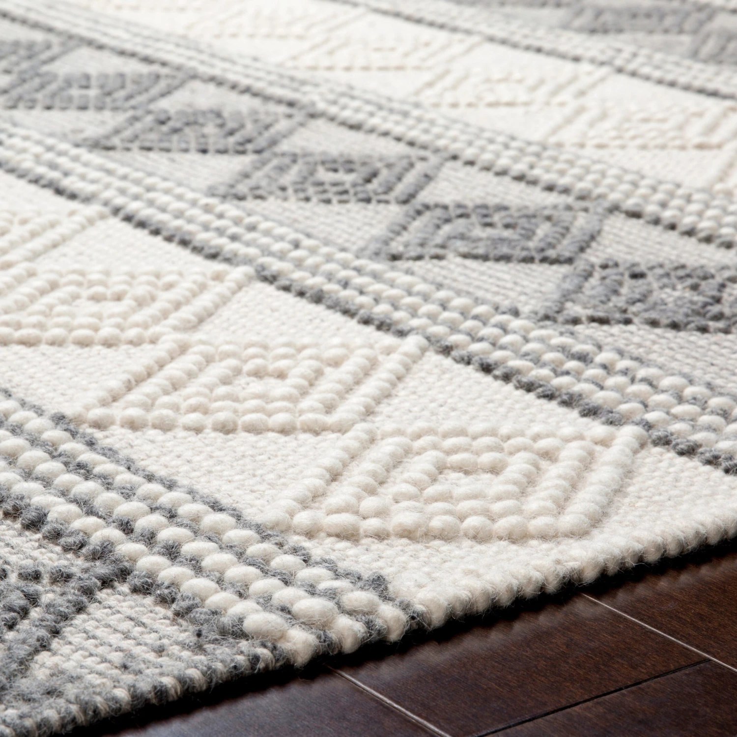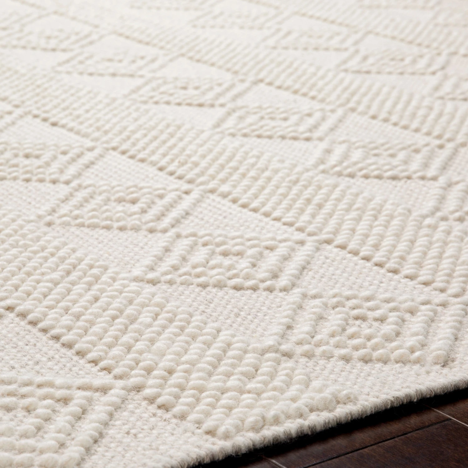 Hand woven with a relaxed and refined pattern with beautiful, breezy tones, this rug is sure to be a boon for your home. A low, knotted geometric texture elevates any cozy space to new heights. The design bears an heirloom quality that will be right at home in your space for years to come.