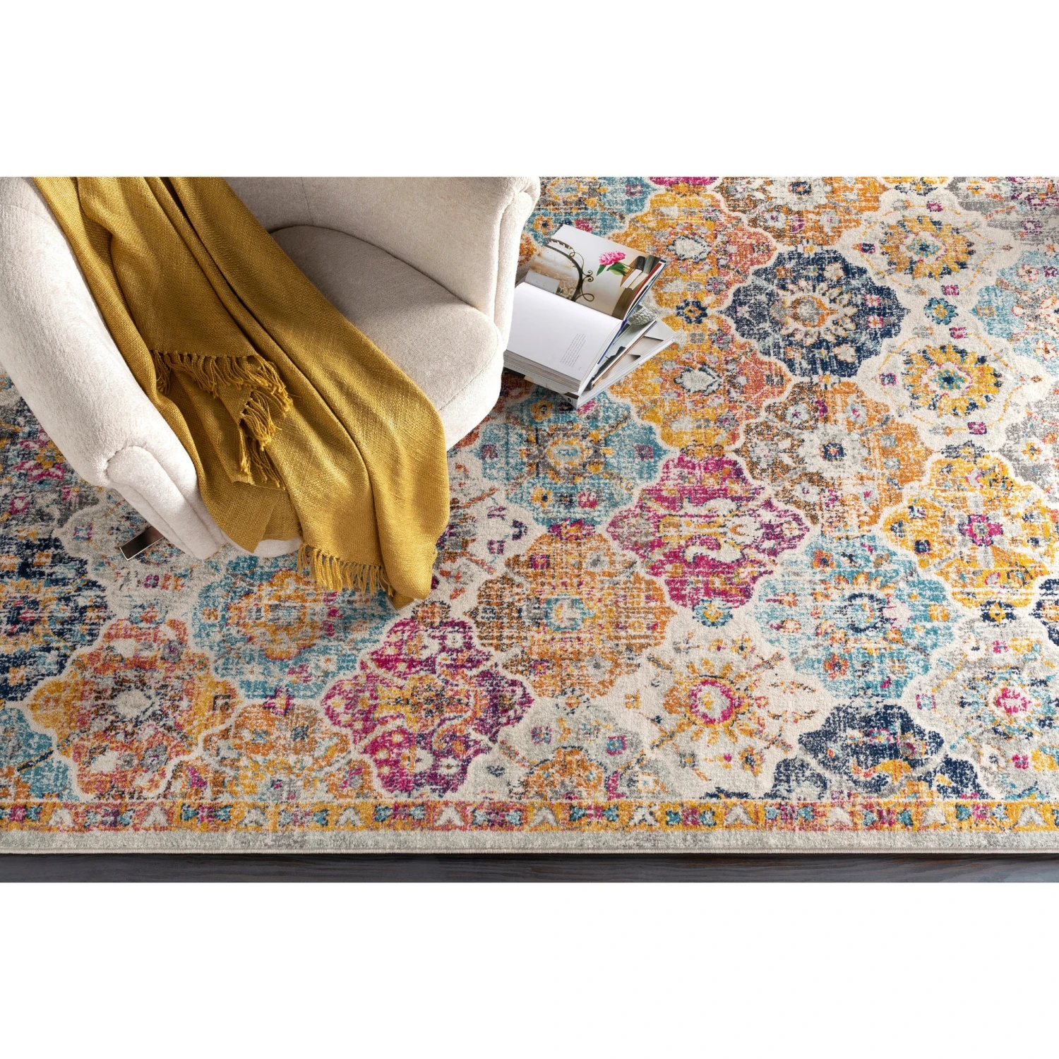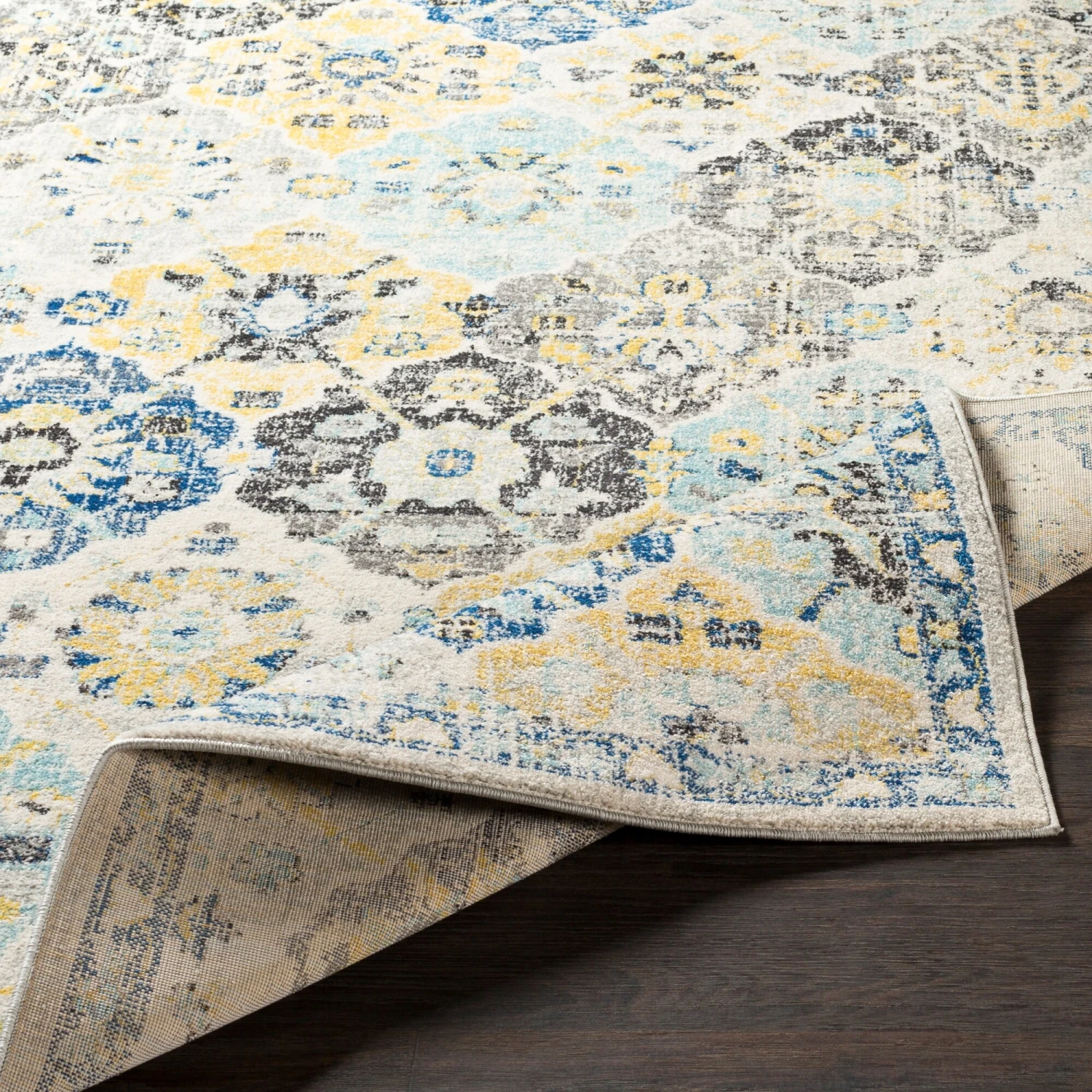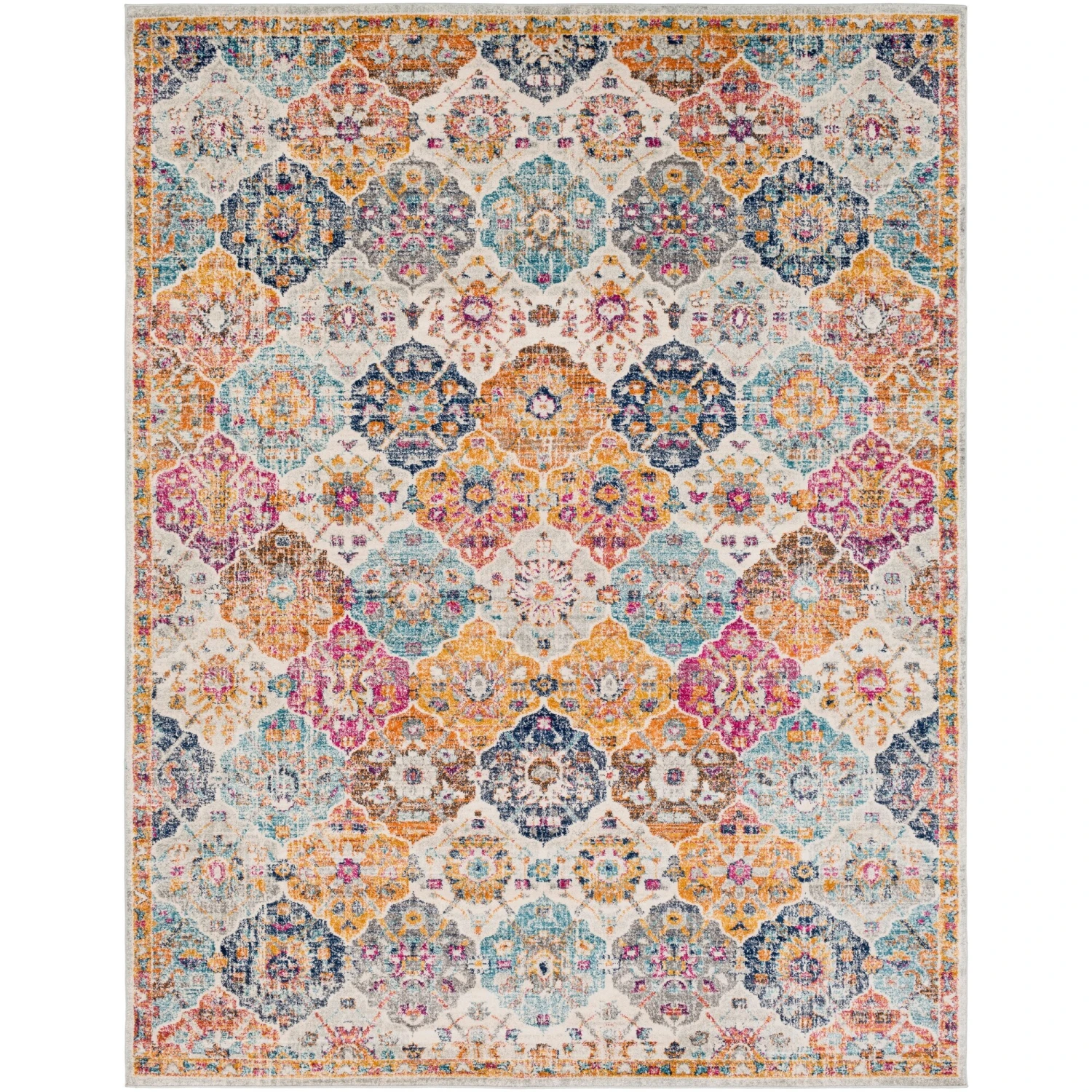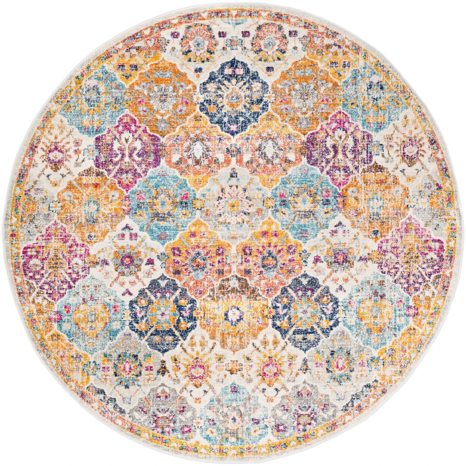 The Gracie rug is a lively bohemian piece with a detailed patchwork medallion pattern. This rug is sure to bring great color and style to any space. Offers minimal shedding and is great for high-traffic entryways and kitchens. Spot clean or professionally clean only. Rug pad recommended.