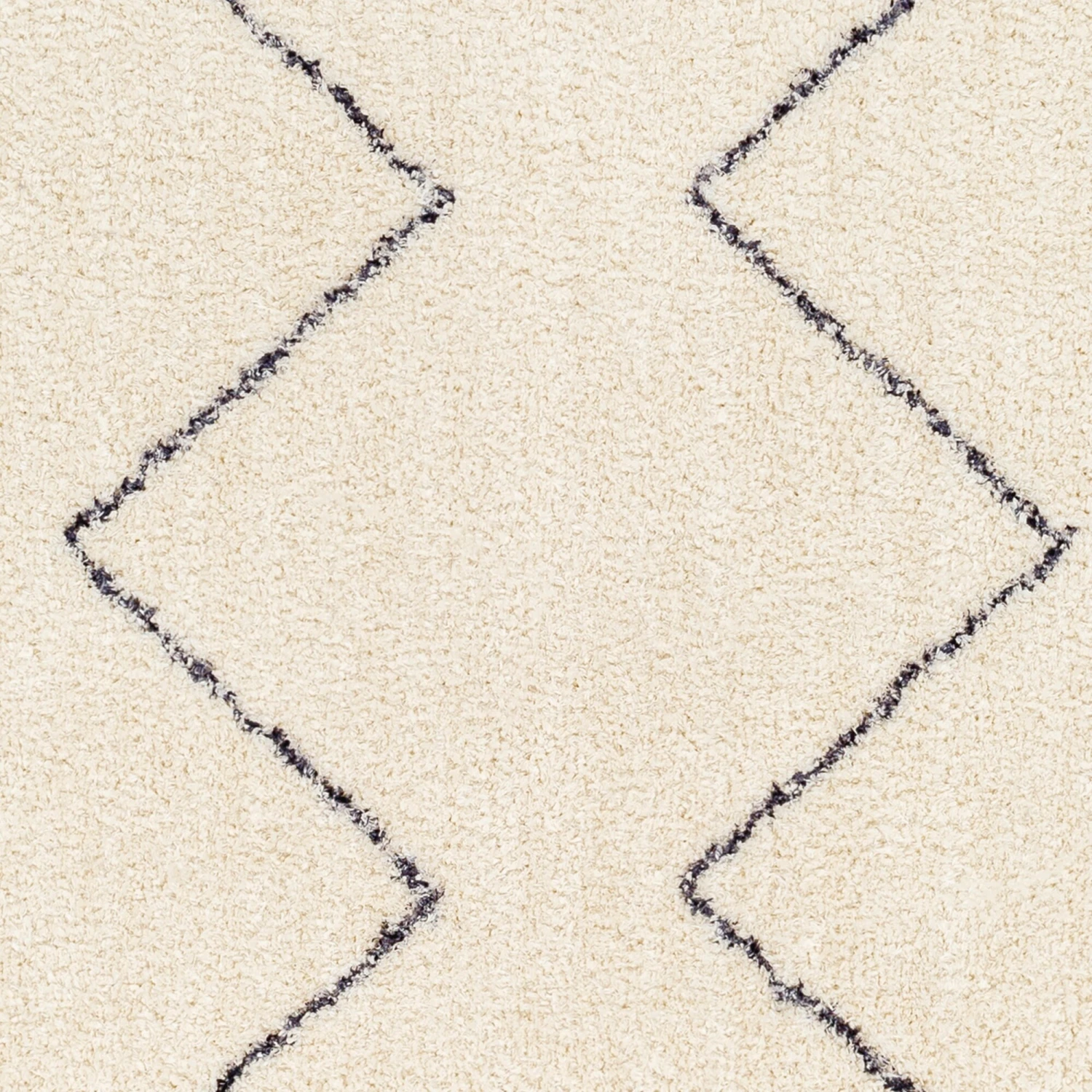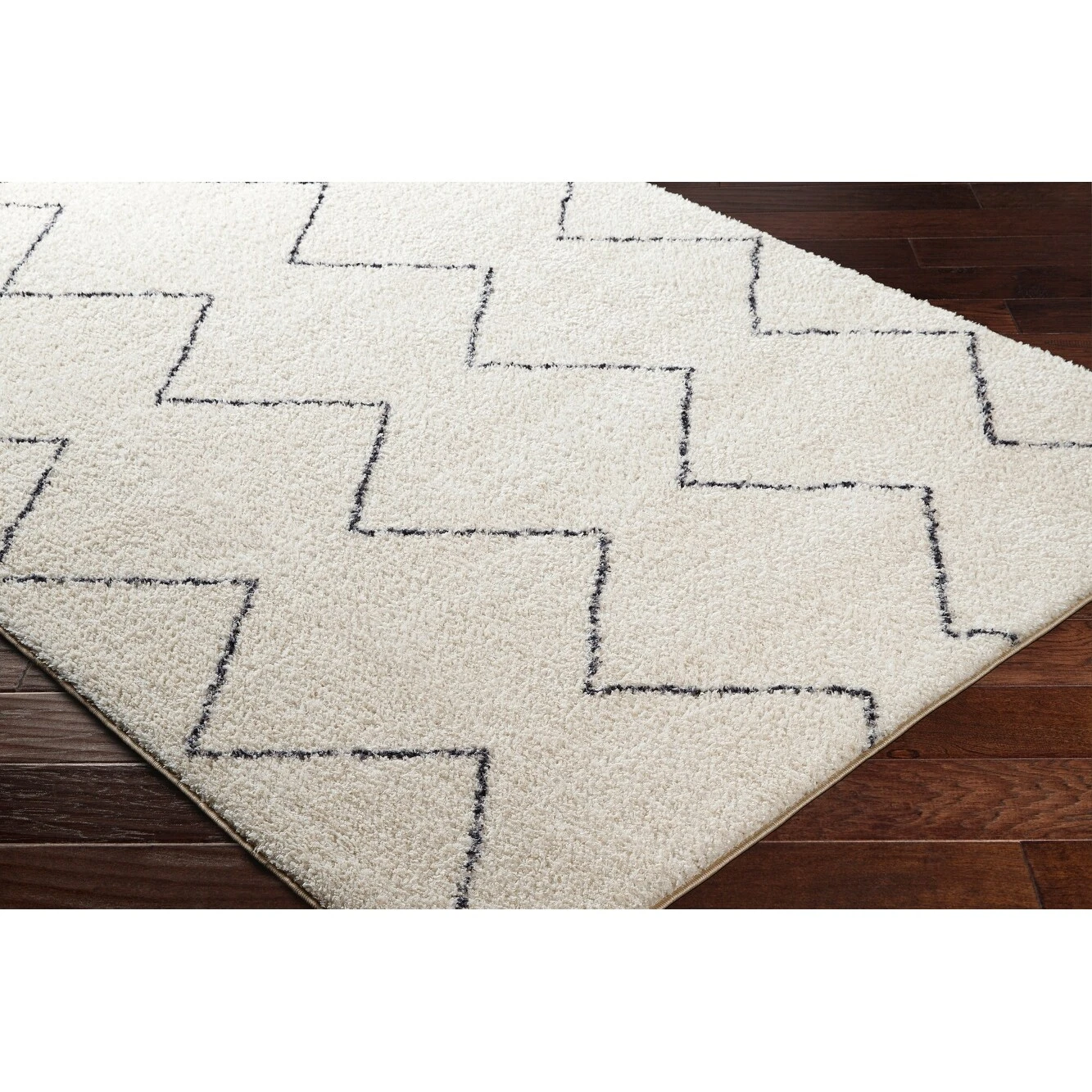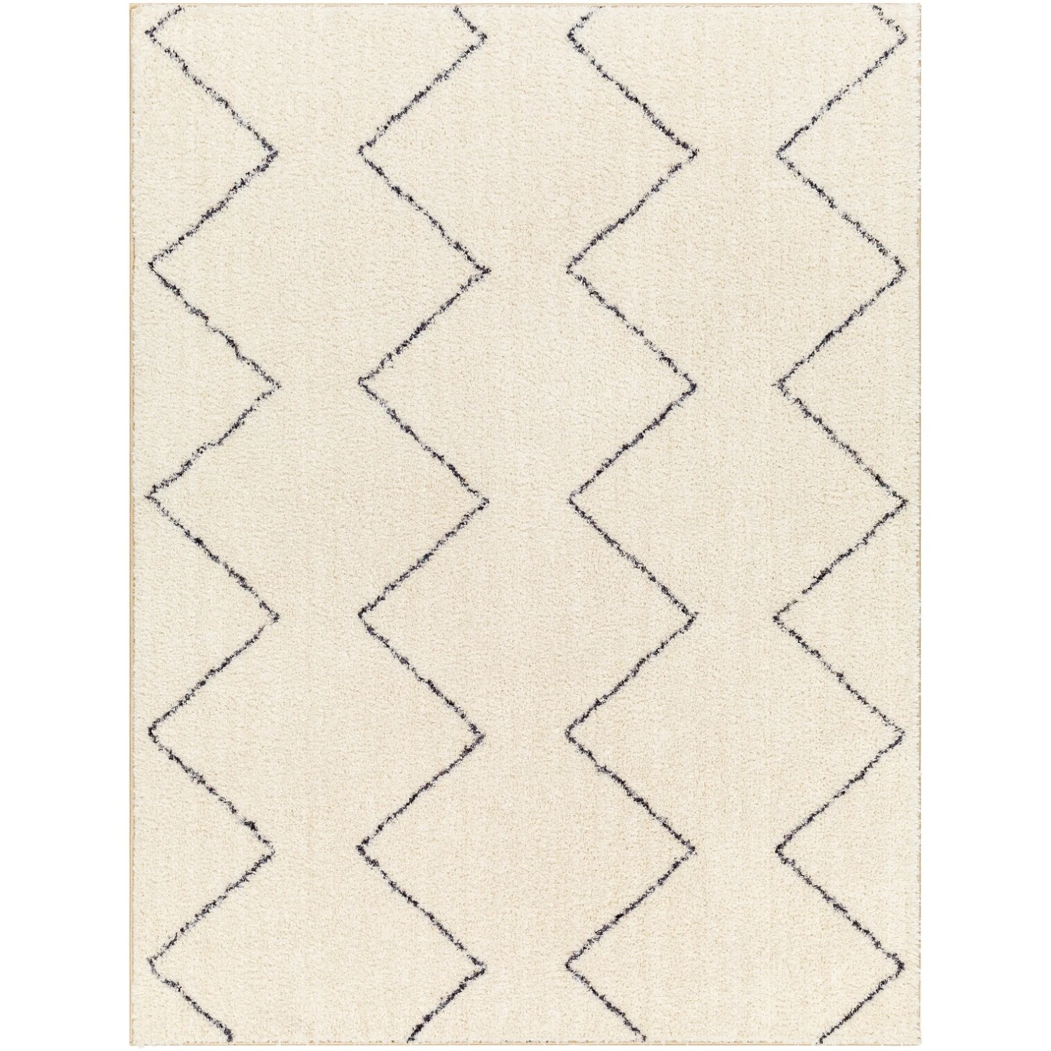 This area rug showcases a Moroccan-inspired geometric pattern featuring wavy lines. A fabulous accent to add design and style to your floors. This carpet creates a warm and cozy ambiance in your home, thanks to the soft high-pile construction. Perfect for casual, bohemian, and global-inspired decor styles. Machine woven in Turkey with 100% polyester, this carpet comes with a rubber backing and offers sturdy resilience against stains and moisture. Machine wash on a cold setting, without detergent and hang to dry. For small spills, spot clean with a clean cloth and vacuum without a beater bar to maintain the appearance of your rug. A rug pad is recommended to prevent movement.