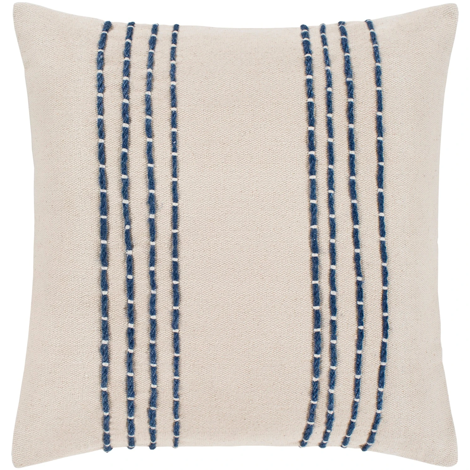 Enhance the look of your reading nook chair with this hand-embroidered throw pillow from the Malik Collection. Skillfully crafted in India, this cream-colored pillow features navy blue yarn stripes for a casual decorative accent and textured appearance, and a zipper closure makes the pillow cover easy to remove for cleaning.