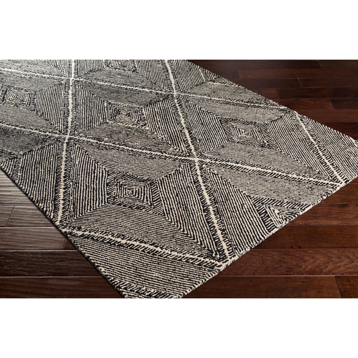 With its beautiful heathered coloring, cut-and-loop wool pile, and trend-forward geometric farmhouse pattern, the Manu collection is artwork for your home! Hand-tufted in India with 100% wool, this rug offers a comfortable pile and soft, neutral tones to ground your space. Perfect for a cozy living room or bedroom. Spot clean or professionally clean only. Rug pad recommended.