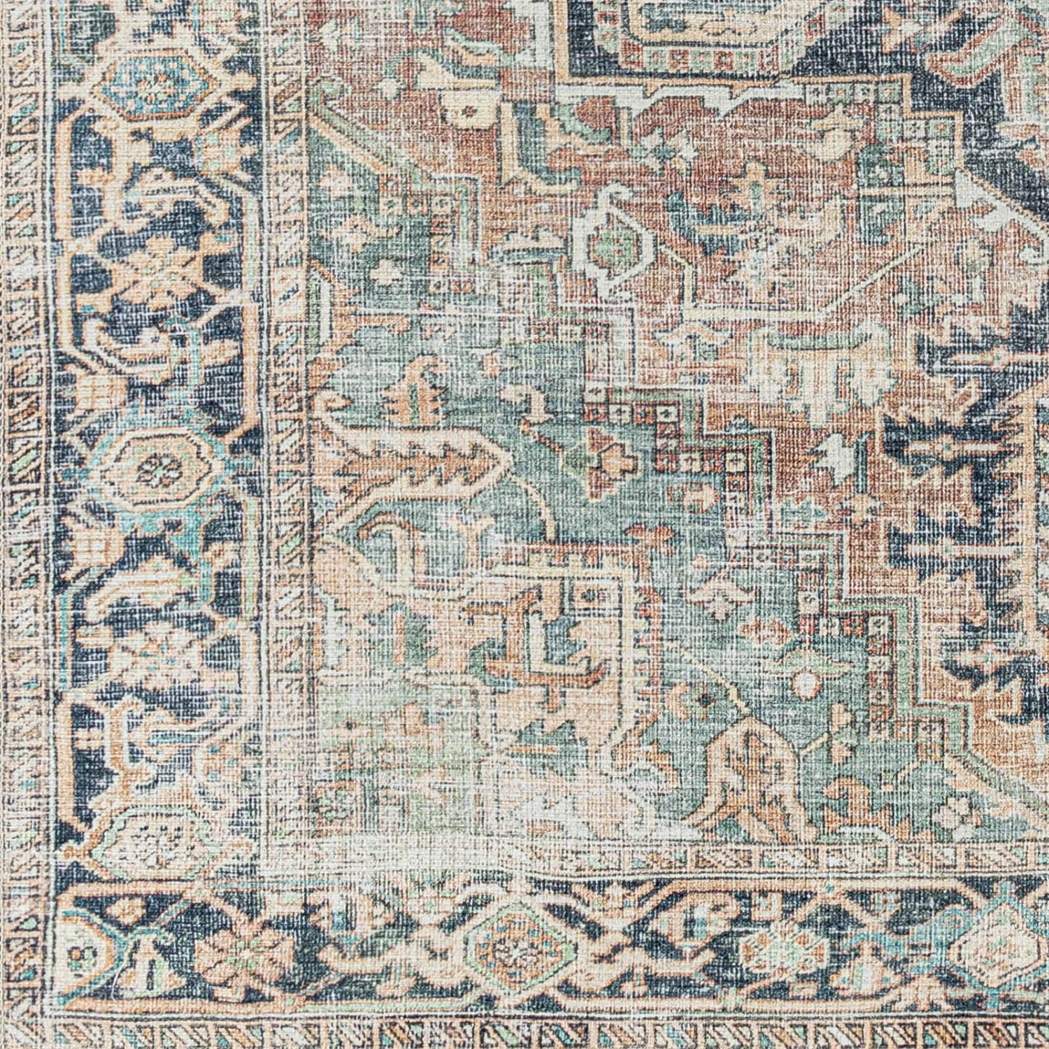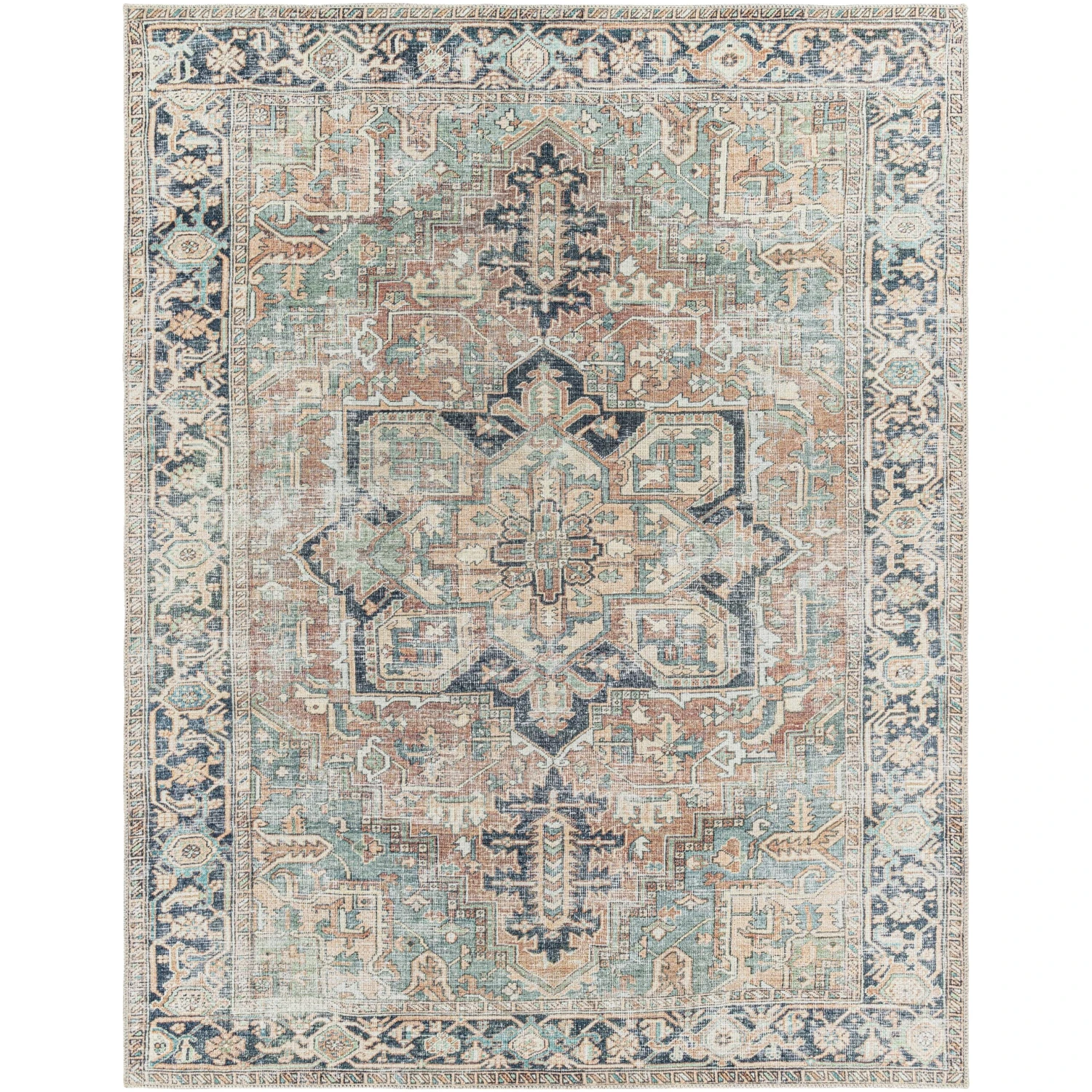 Add a touch of classic sophistication to any space with the Maximus Traditional Medallion Machine Washable Area Rug. Its traditional medallion design and grandiose old-fashioned details evoke feelings of a grandfather’s dusty study, while its faded dye adds a touch of vintage elegance. Machine woven in Turkey with 100% polyester and a low pile height of 0.16 inches, this lightweight rug is perfect for high-traffic spaces like living rooms, offices, and entryways. Available in Aqua/Taupe, this rug comes in Traditional, Global, Bohemian & Eclectic styles with Medallion, Floral & Botanical, Border patterns to choose from.