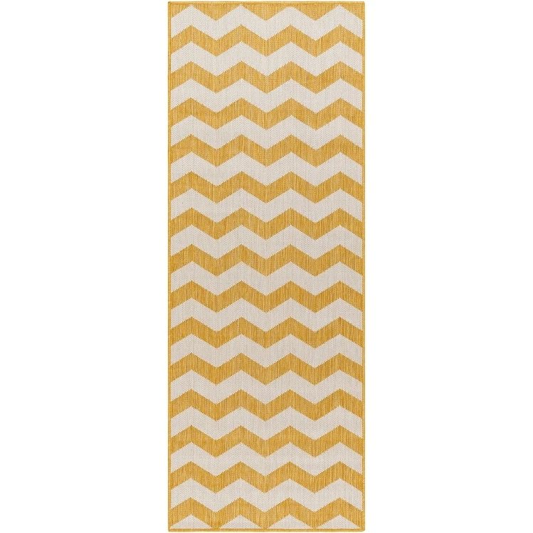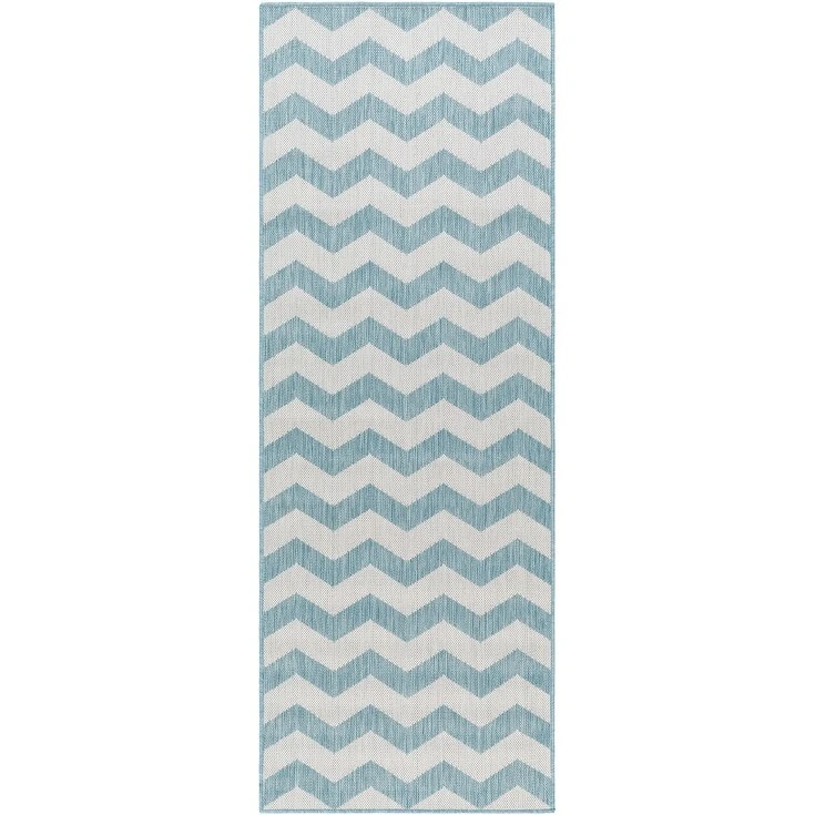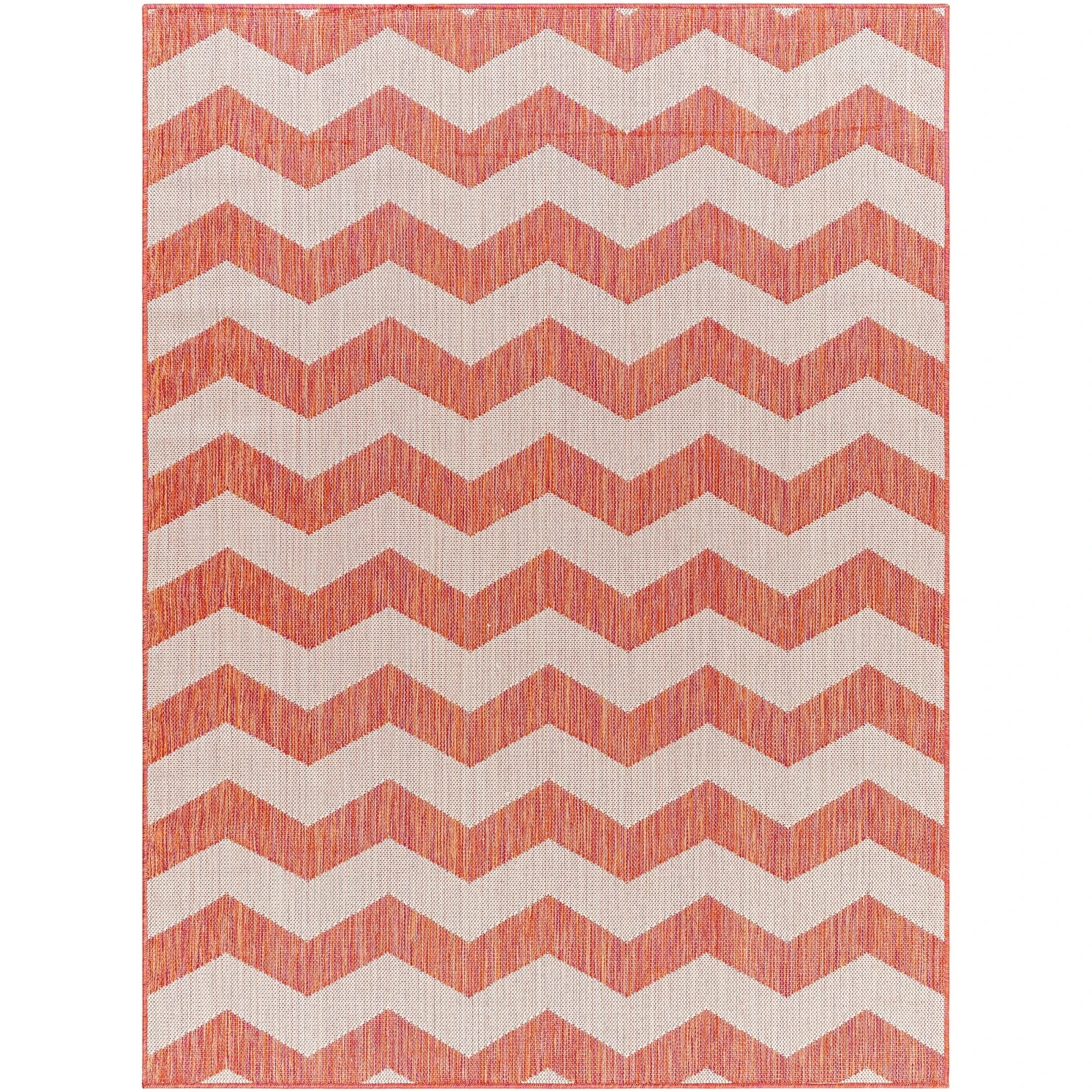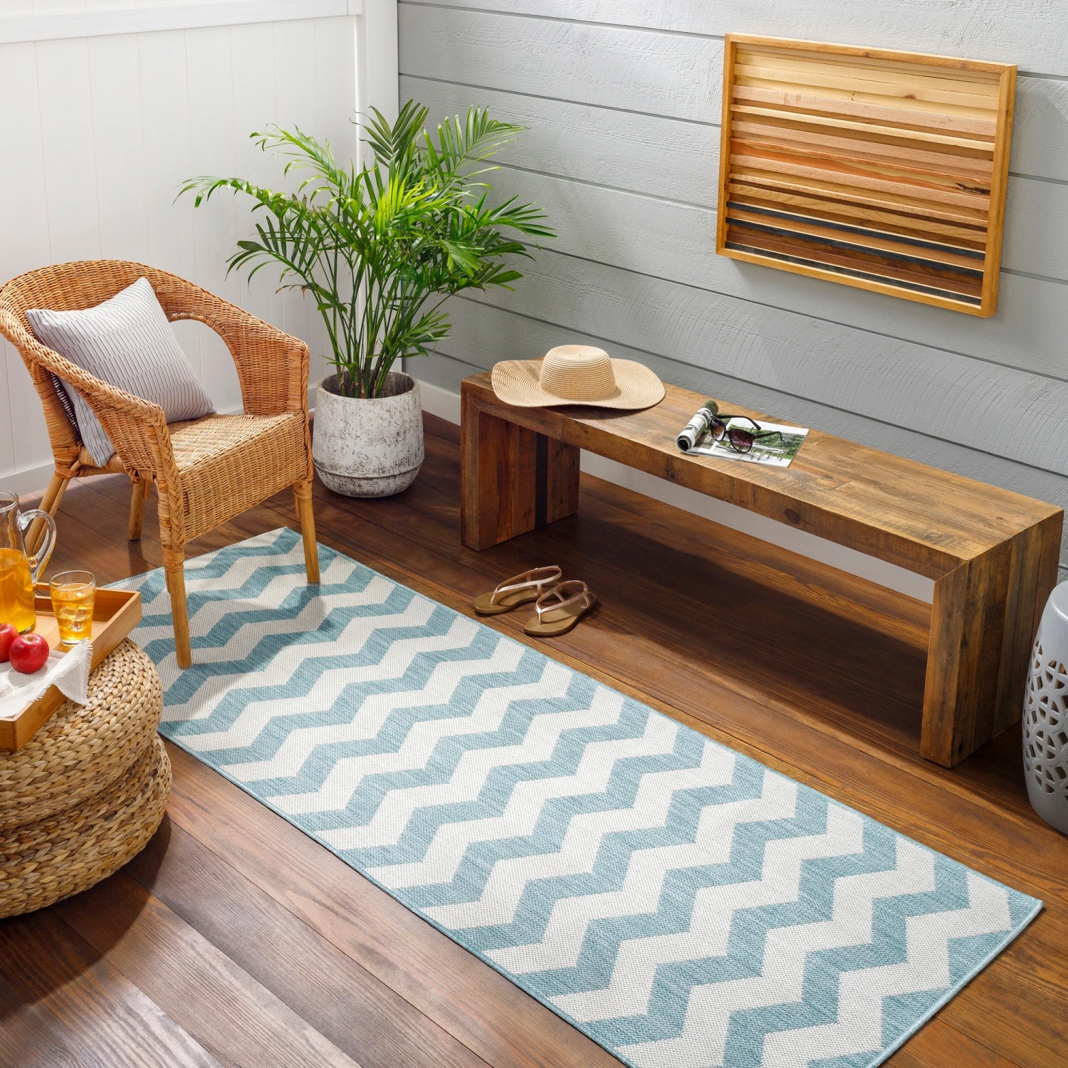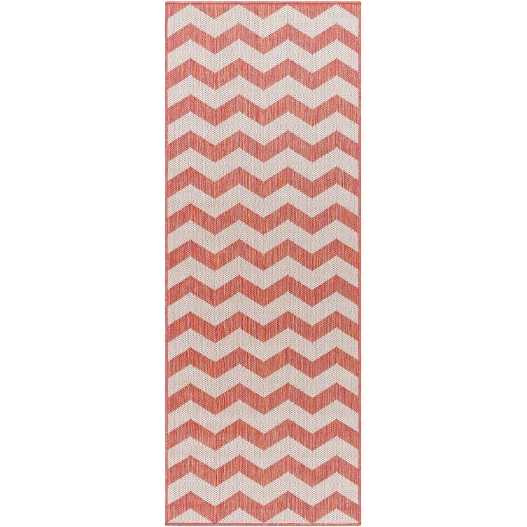 This high-performance geometric rug from the Motala collection enlivens indoor rooms or outdoor patios with a chic vibe. The funky chevron pattern in vivid color creates the perfect outdoor-safe accent for spaces designed in a modern, casual, or coastal aesthetic. Machine woven in Turkey of 100% Polypropylene with no pile, this rug is suitable for high-traffic areas such as patios, entryways, hallways, and living areas. Easy to clean and durable, this rug is perfect for homes with small children or pets and can easily transition for use inside or outside the home. Spot clean only, or rinse with a garden hose. The use of an outdoor rug pad is recommended.