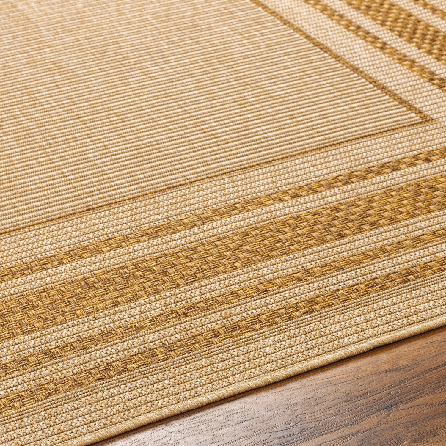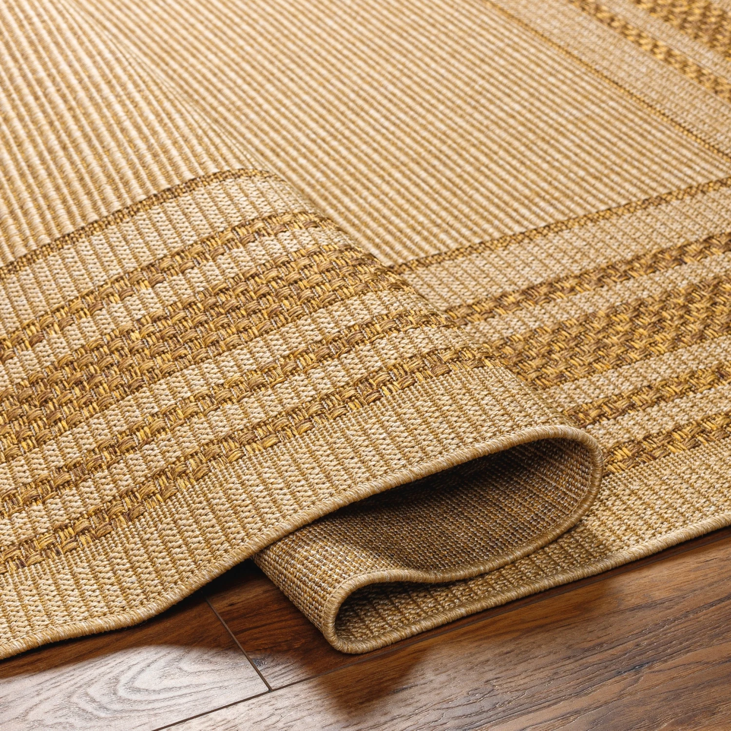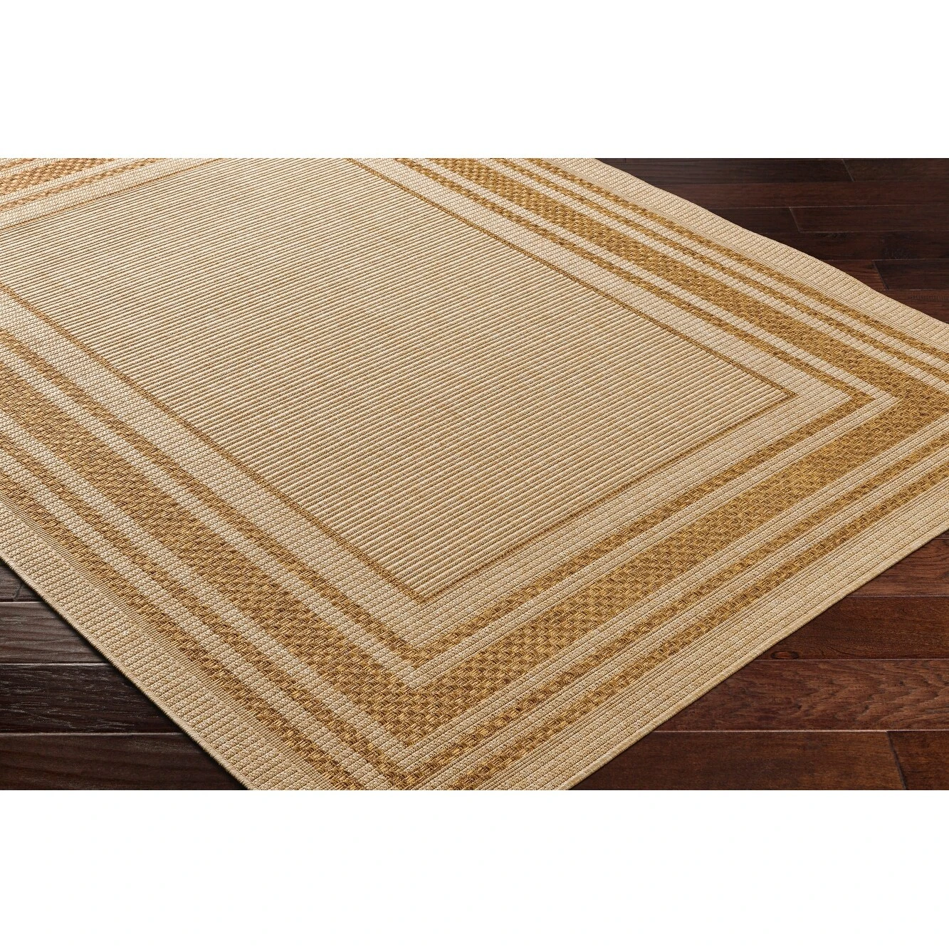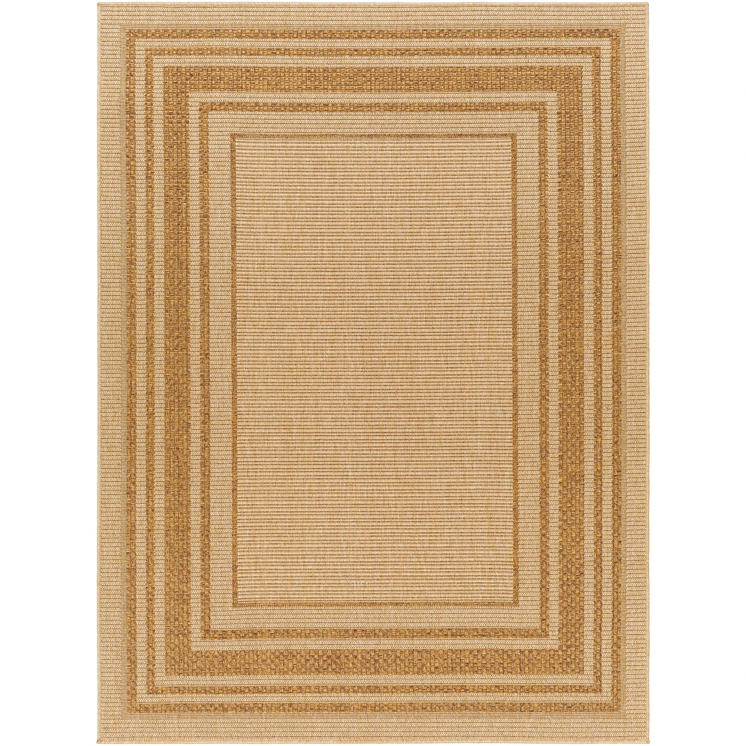 Classic and casual, this high-performance border rug from the Pismo Beach collection offers a versatile backdrop for your indoor or outdoor space. This outdoor-safe accent brings tactile appeal to rooms or patios designed in a traditional, coastal, or casual aesthetic. Machine woven in Turkey of 100% Polypropylene with no pile, this rug is suitable for high-traffic areas such as patios, entryways, hallways, dining areas, and living rooms. Easy to clean and durable, this rug is perfect for homes with small children or pets and can easily transition for use inside or outside the home. Spot clean only, or rinse with a garden hose. The use of an outdoor rug pad is recommended.