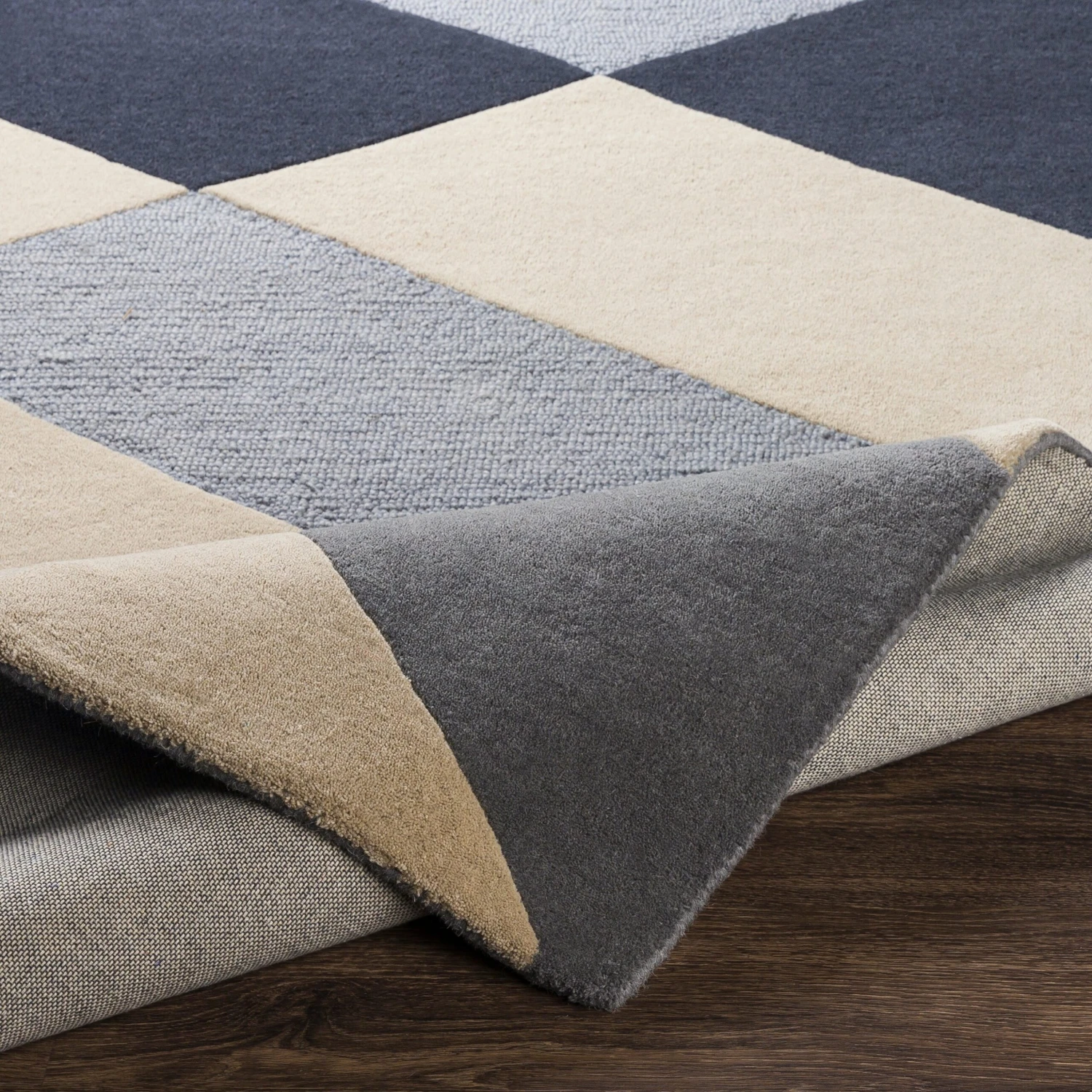 Boasting a color block, geometric pattern, this Quincy rug will add beautiful appeal to your home. This chic rug is hand tufted from soft wool, giving a plush underfoot feel. The trendy tones and unique design will dress up your space.