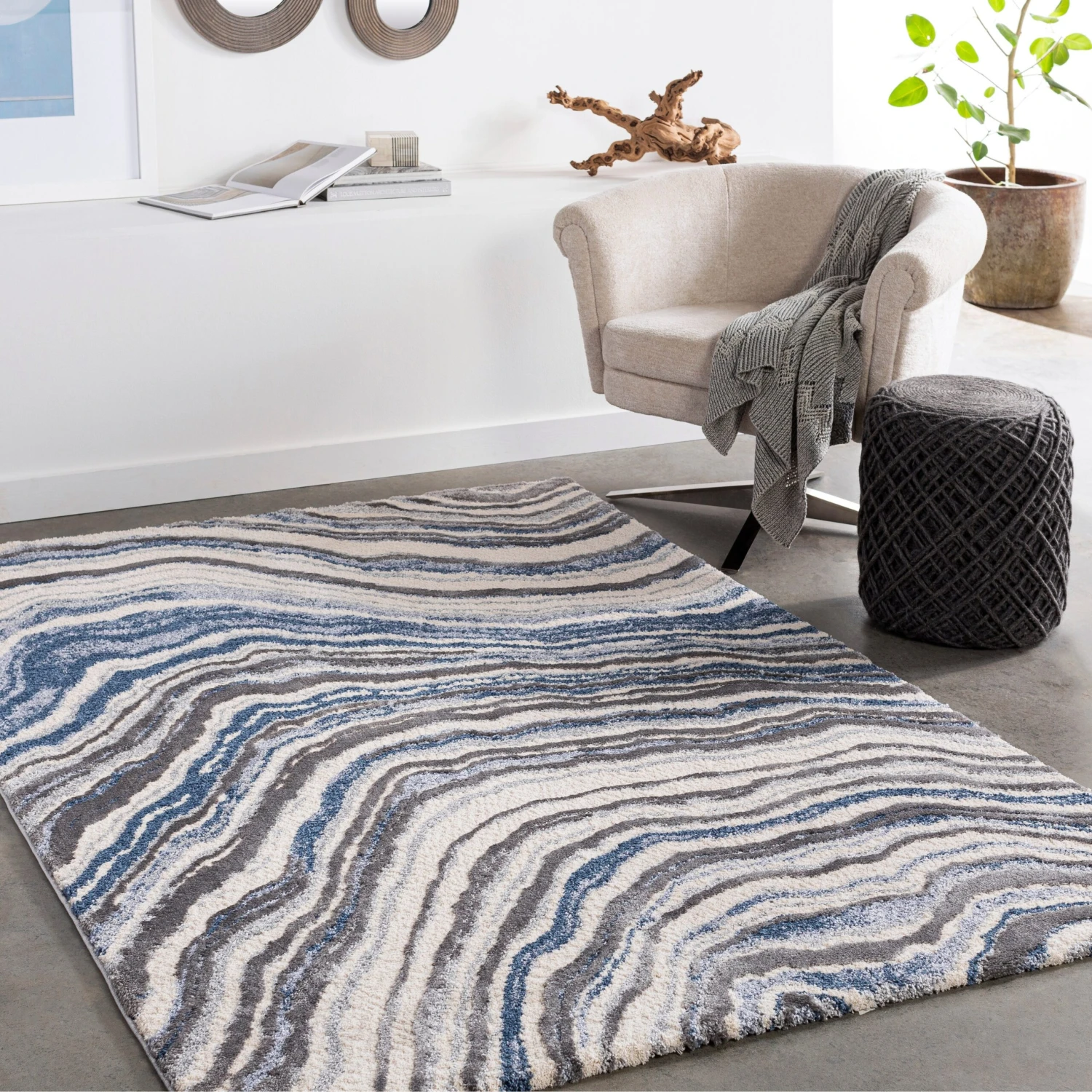 A simple striped graphic in a loose wave pattern and a cozy, plush pile of 1.18 inches are striking features of the Sigrit collection. With an intricate pattern in neutral colors, this rug provides comfort at an affordable price. Great for bedrooms and living rooms. Machine woven in Turkey with a blend of polyester and polypropylene that provides both style and a soft touch. Spot or professionally clean only. Rug pad recommended.