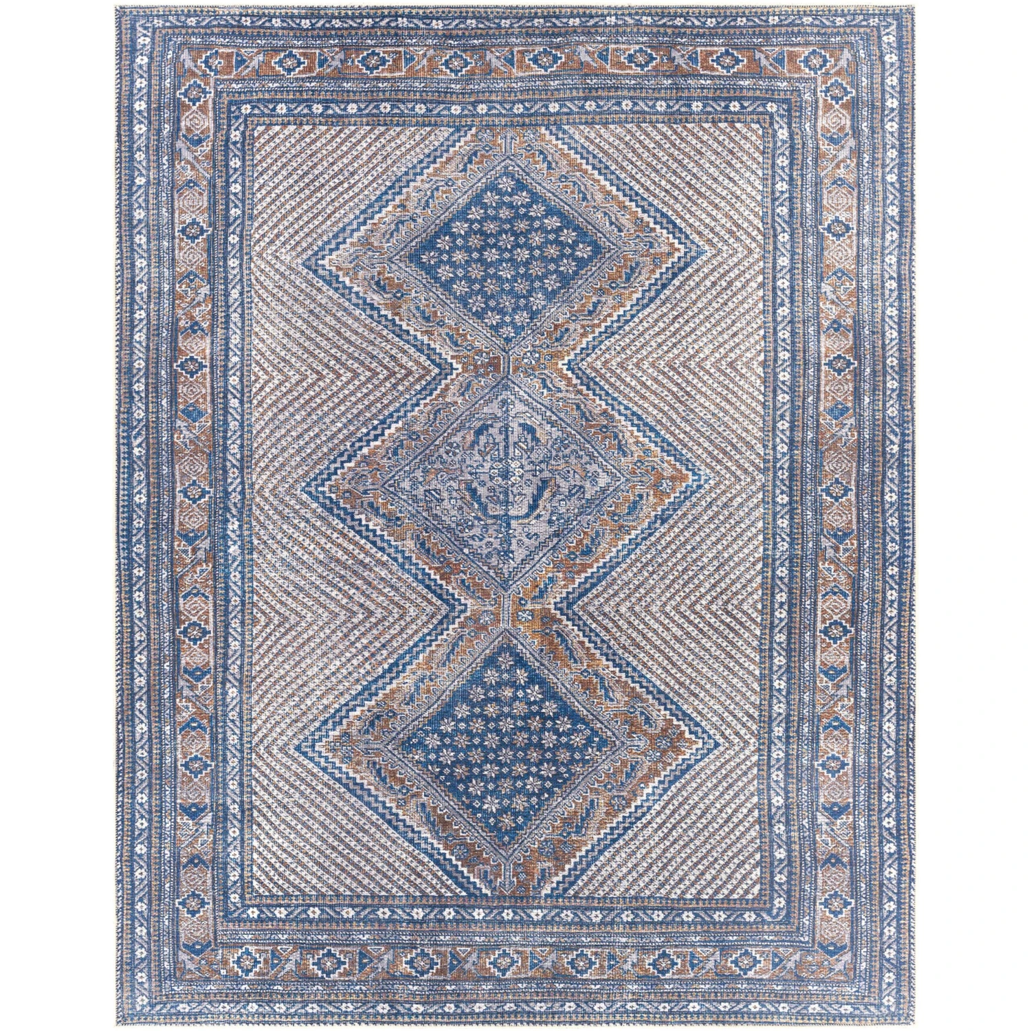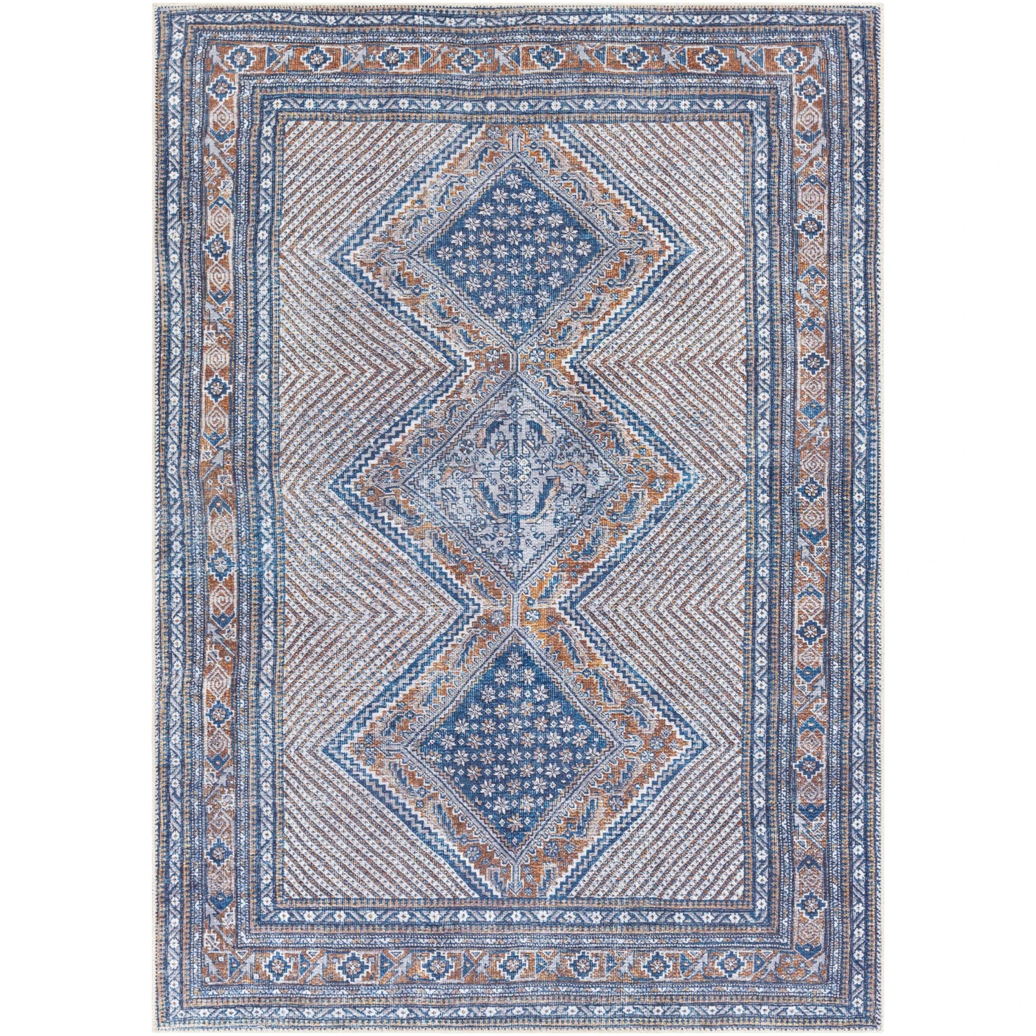 With a bold medallion pattern in beautifully vintage tones, the Silvia collection will be a great addition to your home! With a low profile reminiscent of an antique rug, a slightly distressed screen printed pattern, and a soft touch, this piece will add a nice pop of style and comfort. Machine woven in Turkey with 100% chenille-polyester, this synthetic rug is great for high-traffic areas. Machine washable. Rug pad recommended.