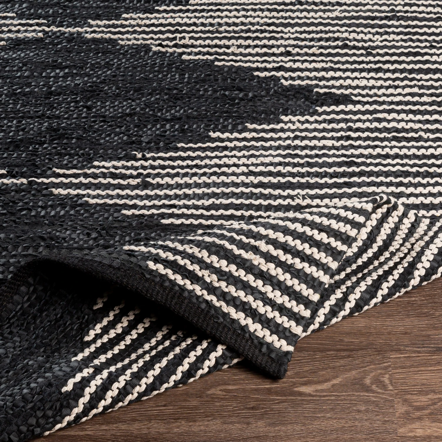 Edgy, cool, yet perfectly rustic, the Soundtrack Handmade Area Rug is a great addition to minimalist, modern and farmhouse decors. Great for high-traffic areas such as dining rooms and busy living rooms. Kid and Pet-friendly. Spot or professionally clean only. 80% Leather, 20% Cotton. No pile. Hand Woven. Made in India.